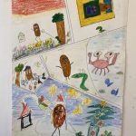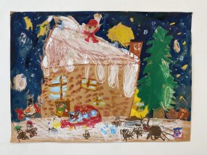 そしてこちらはお城の細かい線を自由に組み合わせて、白で見えにくいですががんばって描いていました。