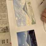 クレパスの白でお城や雪などを線をメインにして描いていきます。