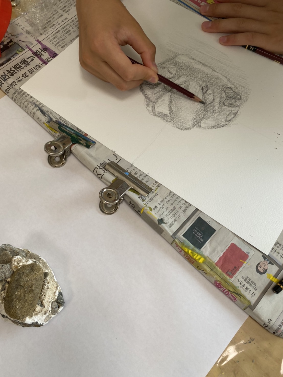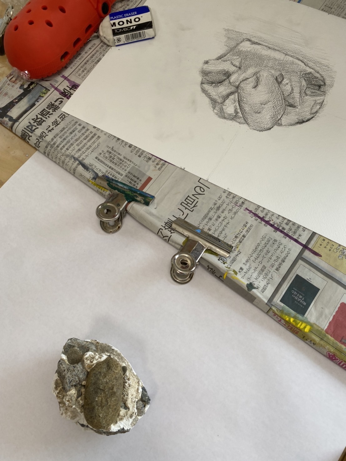こんにちは、2025年9月21日 日曜日(朝)クラスでは、イラスト画、歩く人物の描き方、石のデッサンを行いました。
