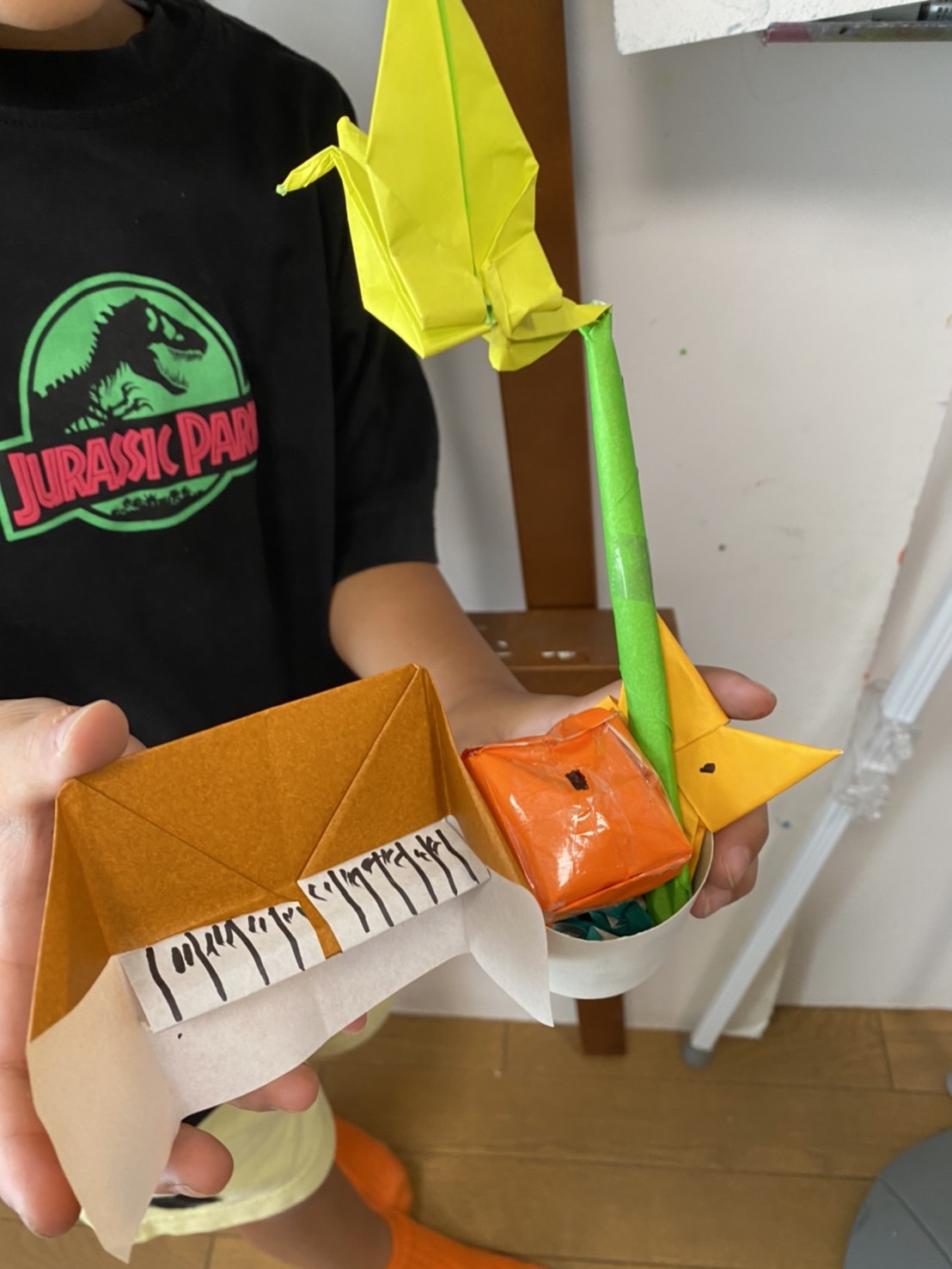 そして、折り紙がしたいとのことで、折り紙でいろんな形作りに挑戦しました。
