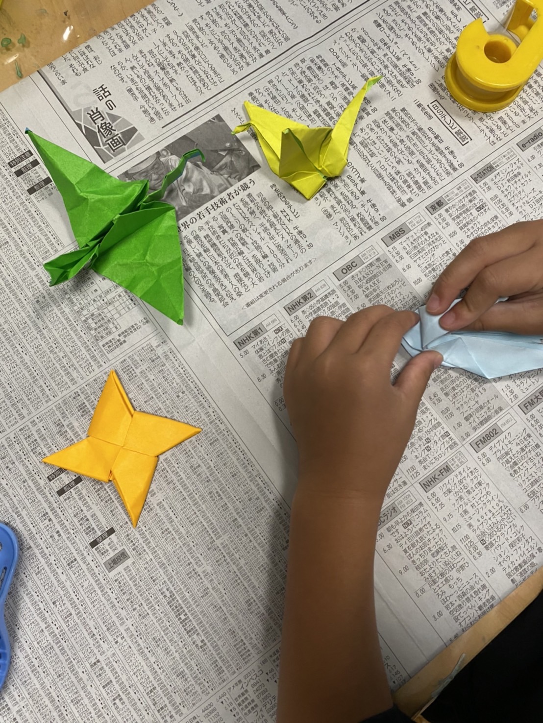 シュリケン、パソコンのボタン、ピアノに、そして、今回はツルの形も覚えましたね!