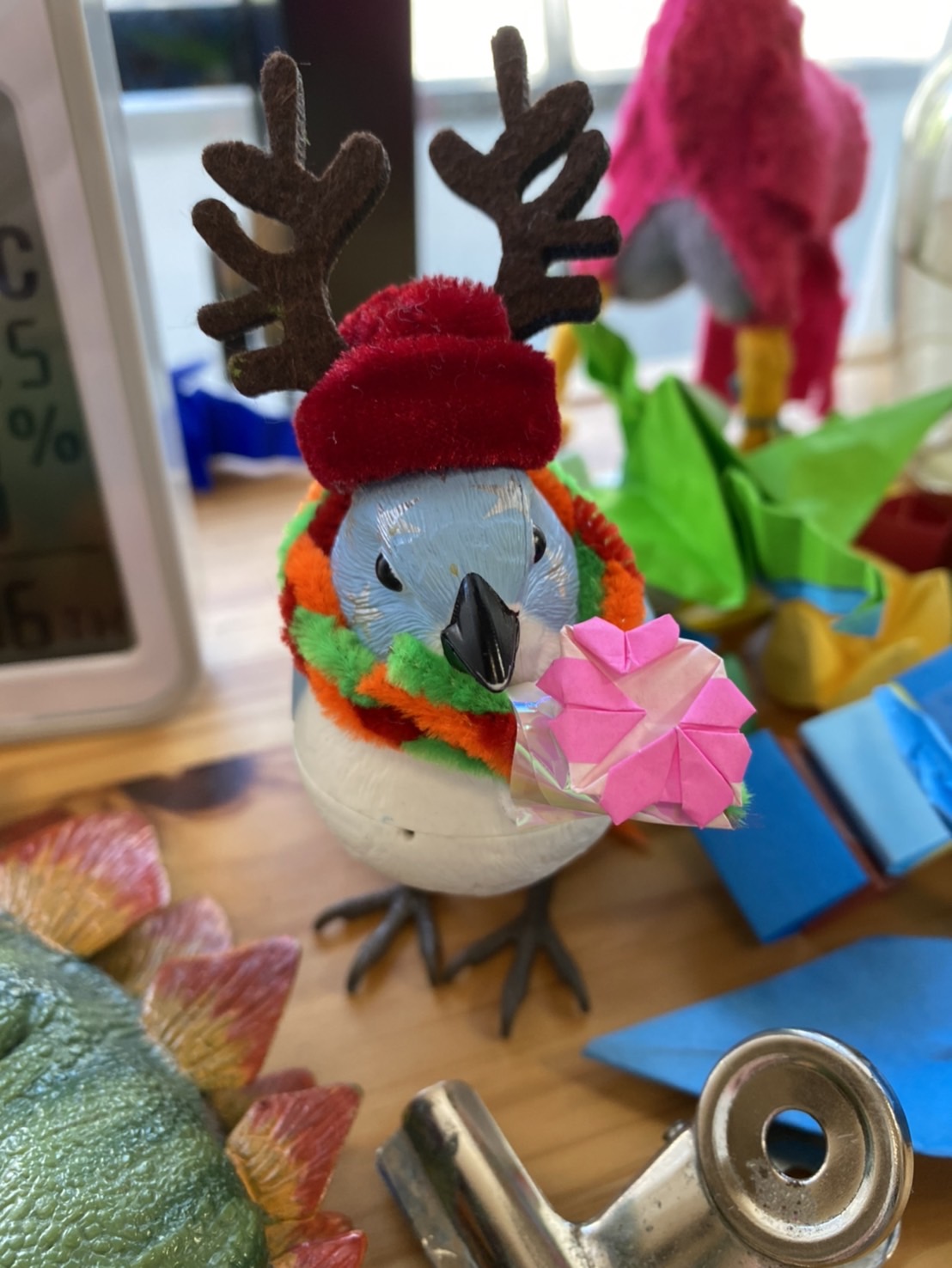 また、鳥さんにおしゃれな首飾りを作ってくれました!おしゃれには、小物アイデム大事ですね!