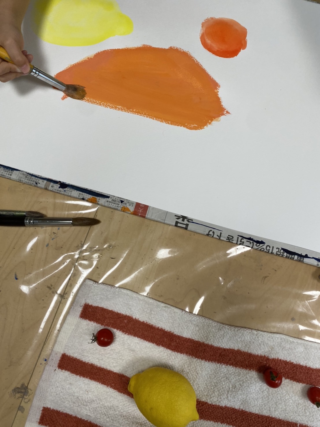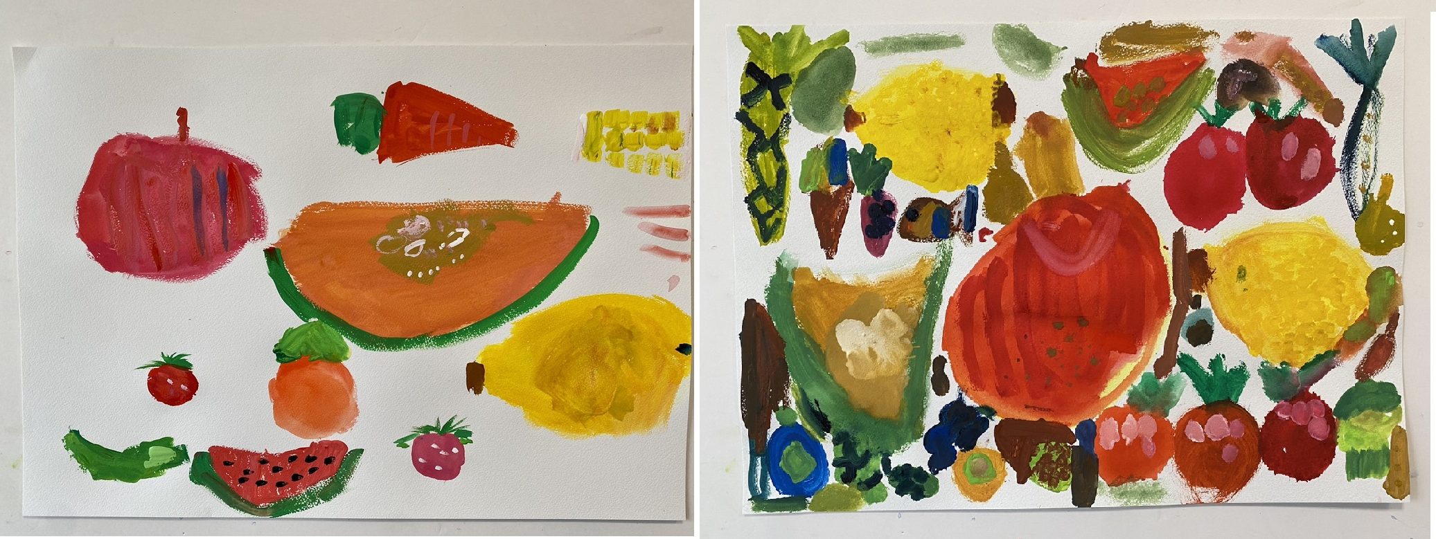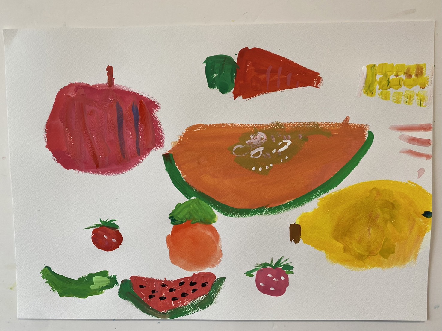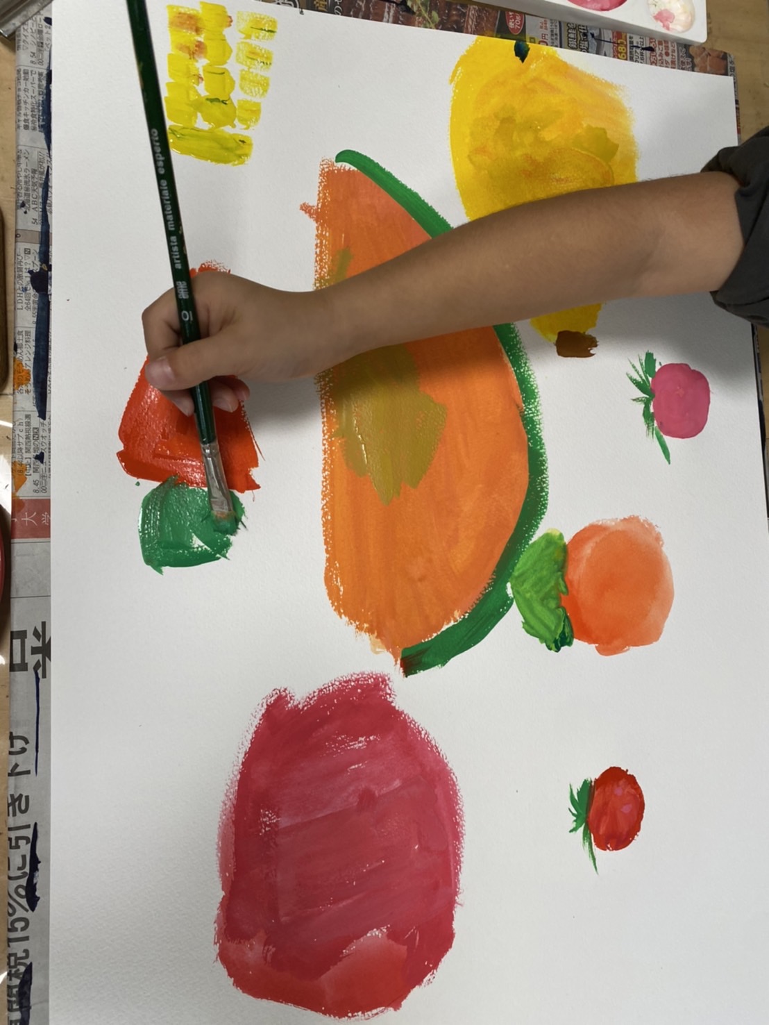 リンゴの模様に点々など、よく観察して描いていました!お気に入りはスイカとのことです!!