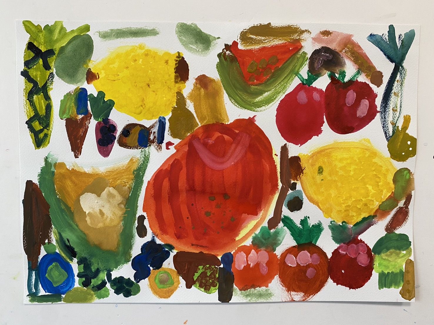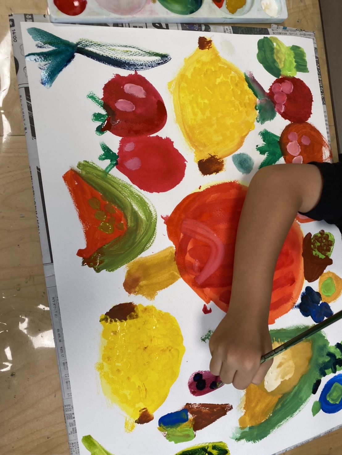 こちらの方は、どんどん自分の好きな野菜や果物を描いていって、盛りだくさんの野菜や果物が集まりました!