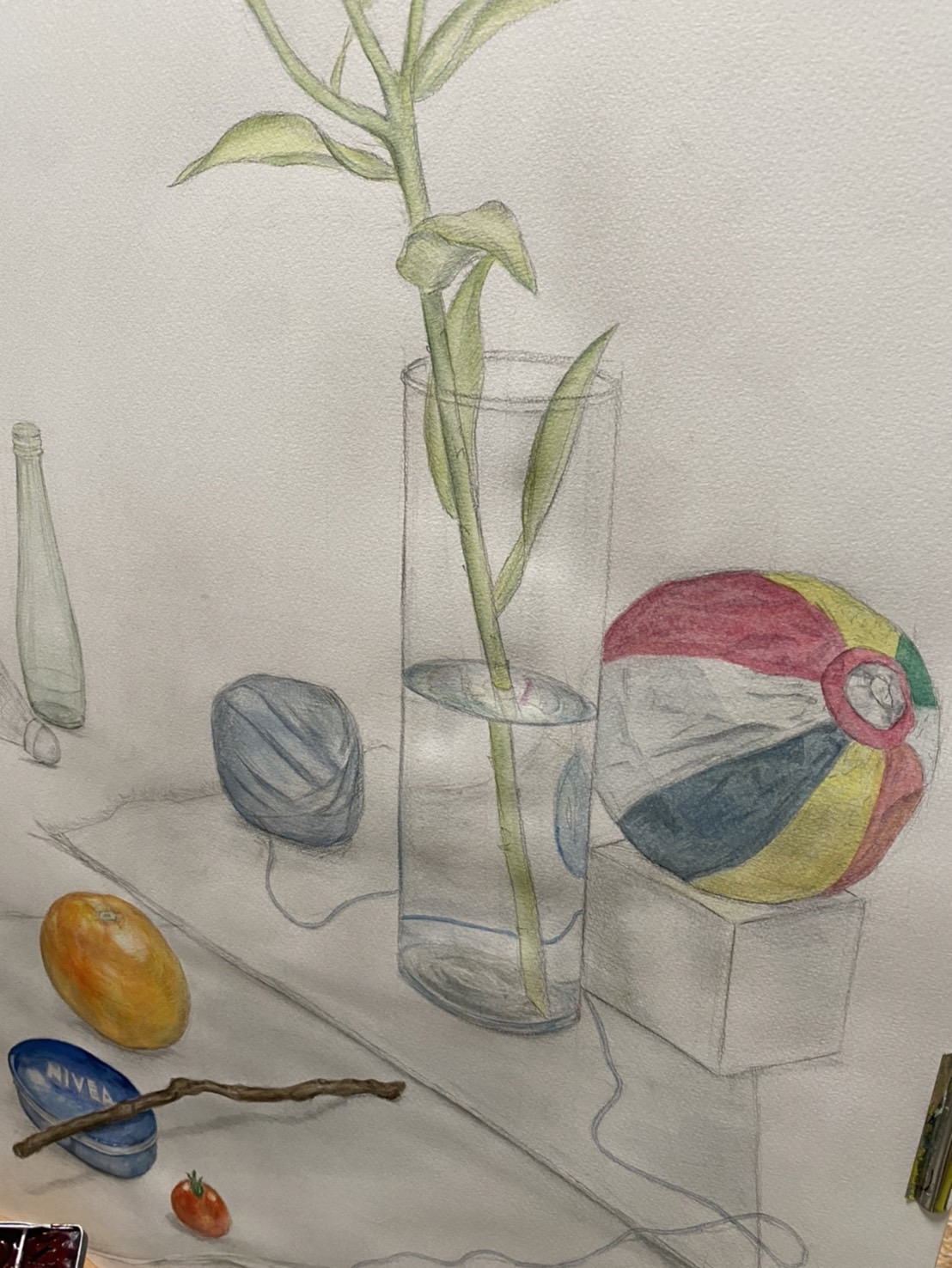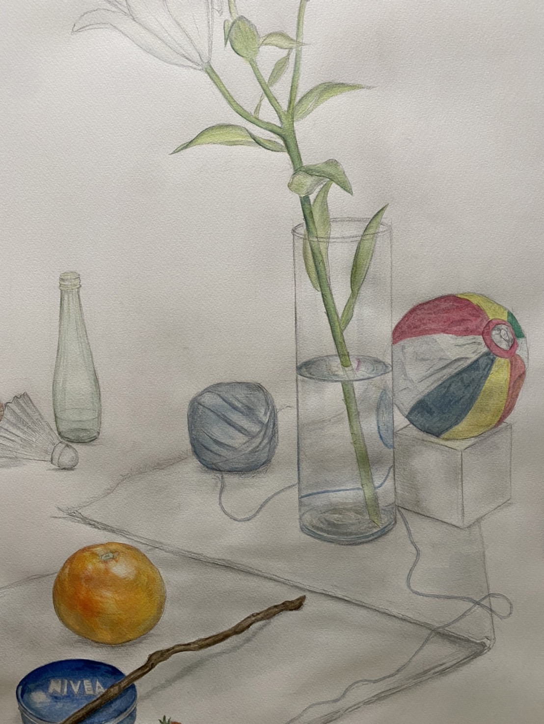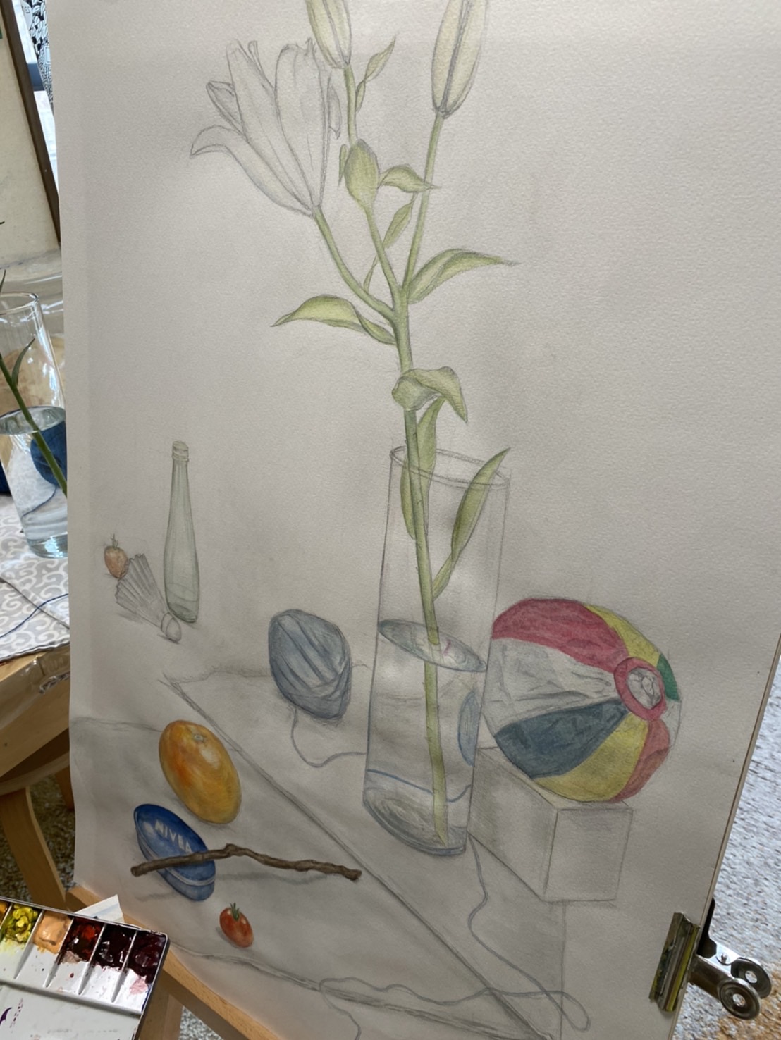 こんにちは、2025年10月12日 日曜日(朝)クラスでは、着彩デッサンを行いました。