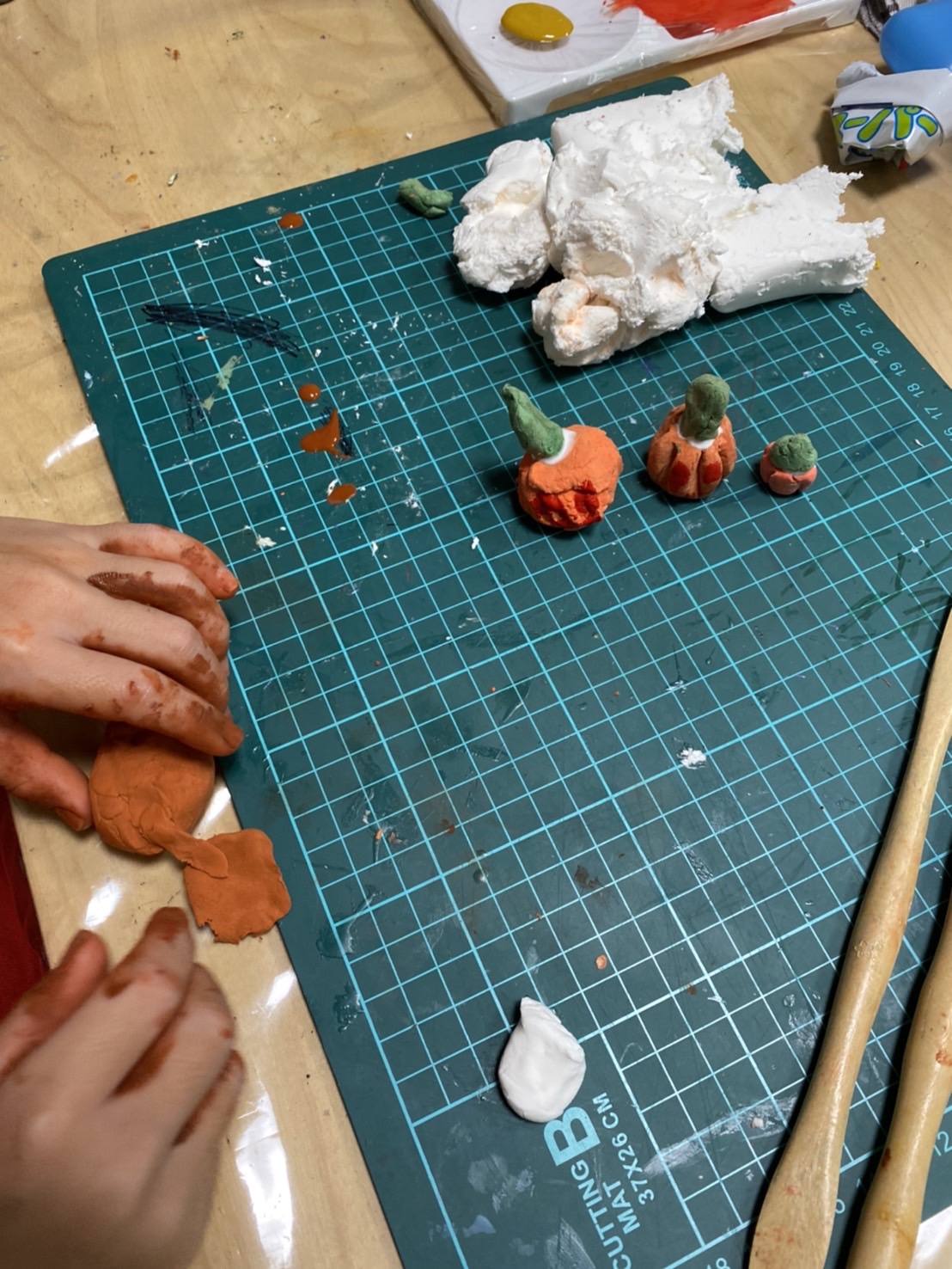 そして、ハロウィンのかぼちゃをねんどで作りました。