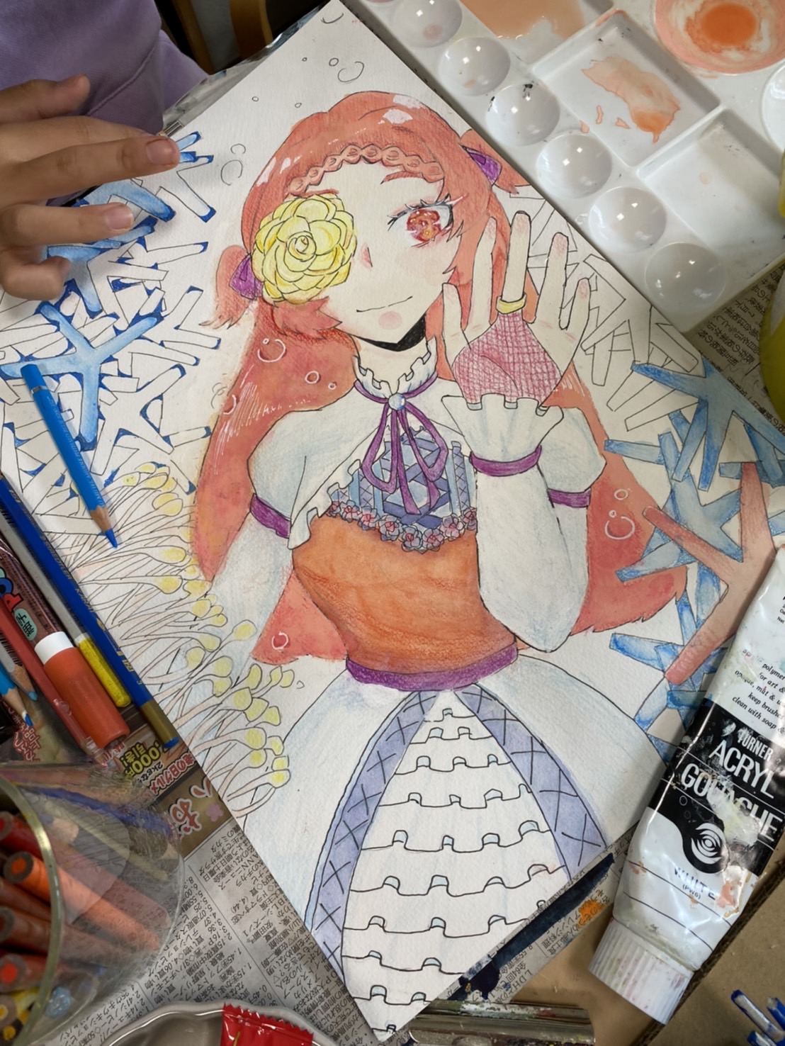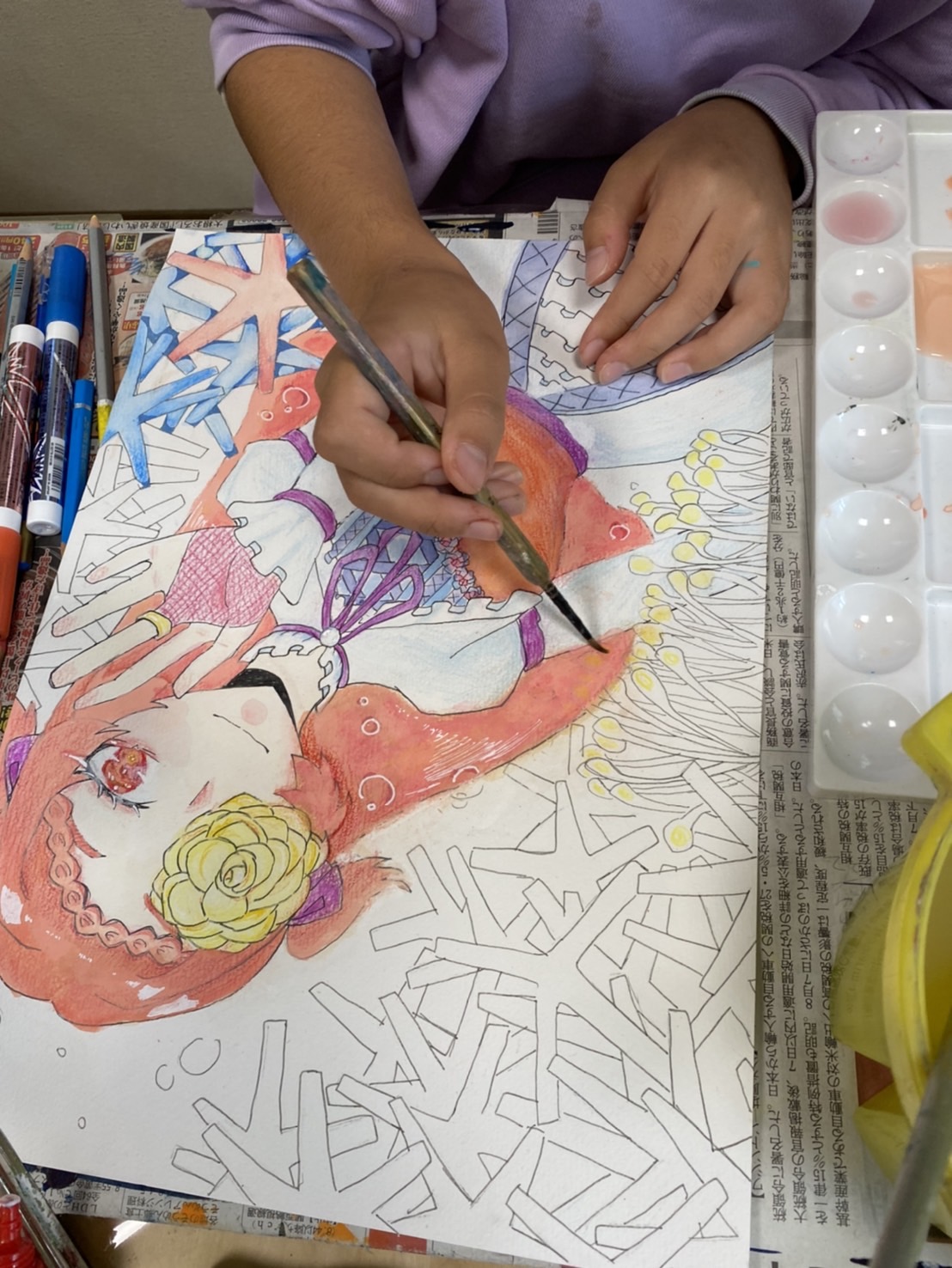 そして、イラスト画は、背景のサンゴを手前と奥を意識して、描いていきました。