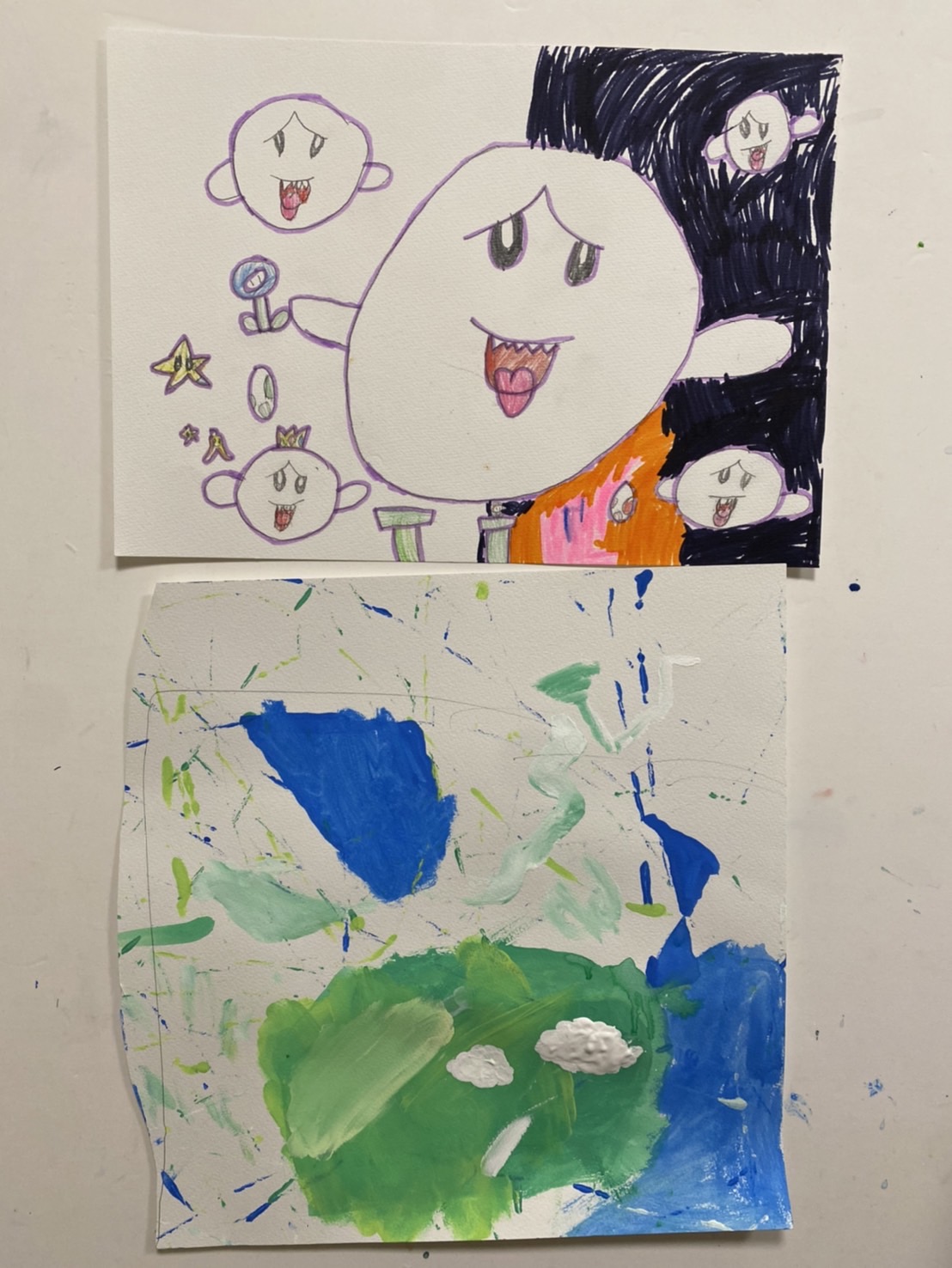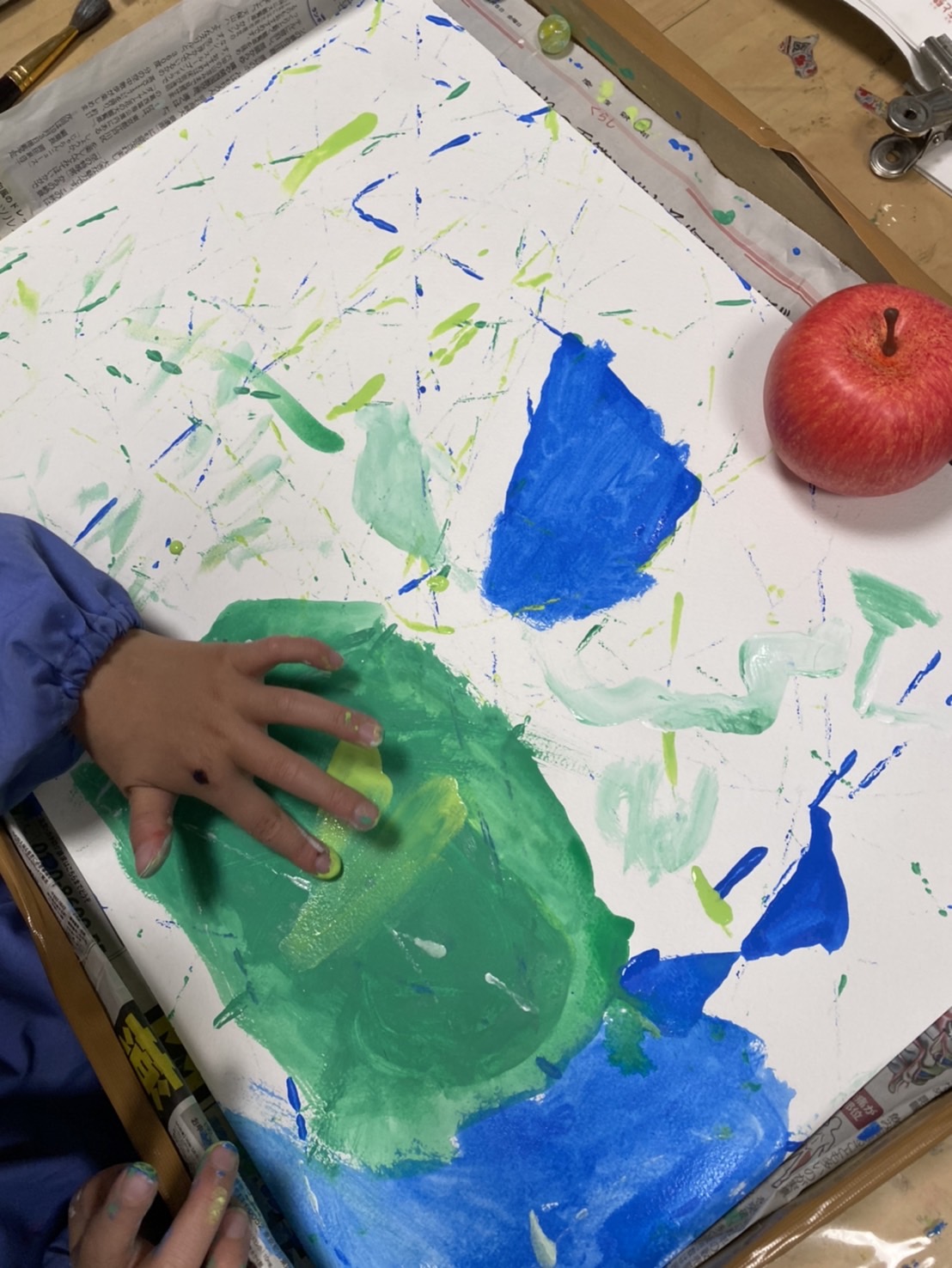 お洒落なリンゴを描いて、雲の模様がポイントとのことです!マリオのキャラクターもたくさん描いていました!