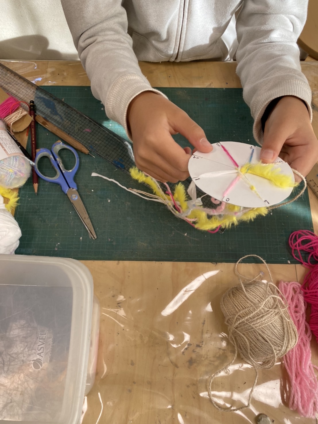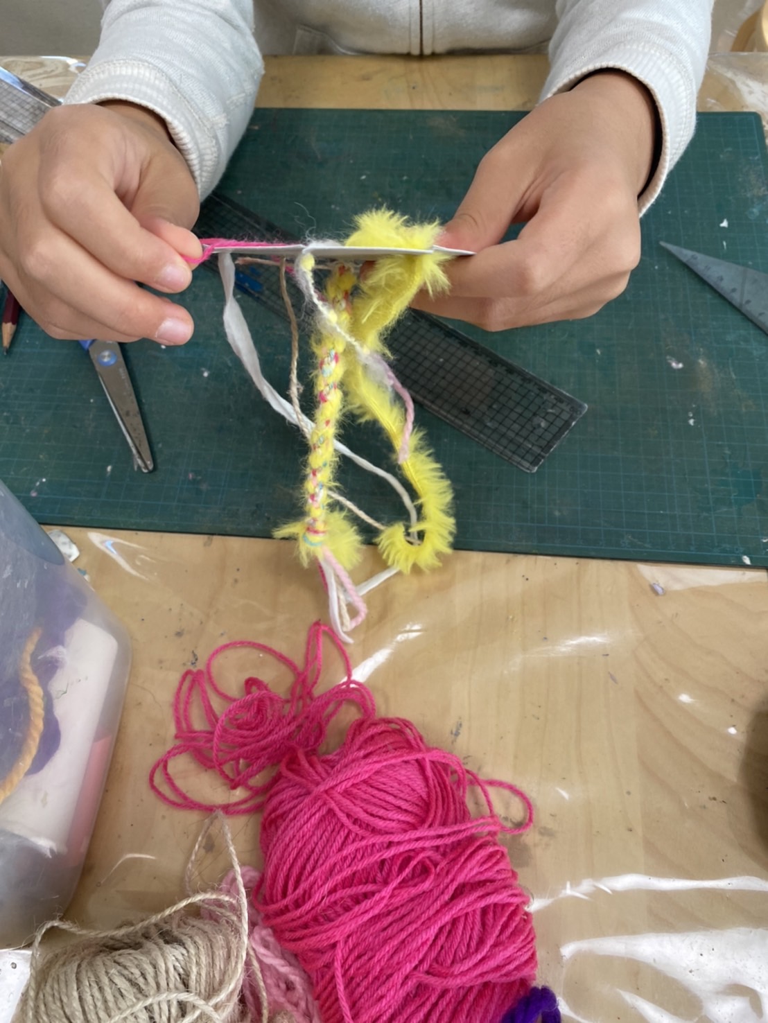 そして、ミサンガ作りは、太い糸で作るミサンガも作ってみたいと、糸の色、質感のバランスをよく考えて選んでいました。編みあがったミサンガは柔らかい色合いが素敵です!