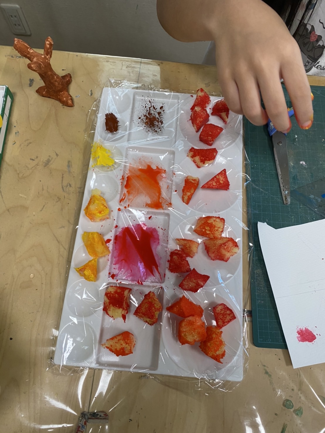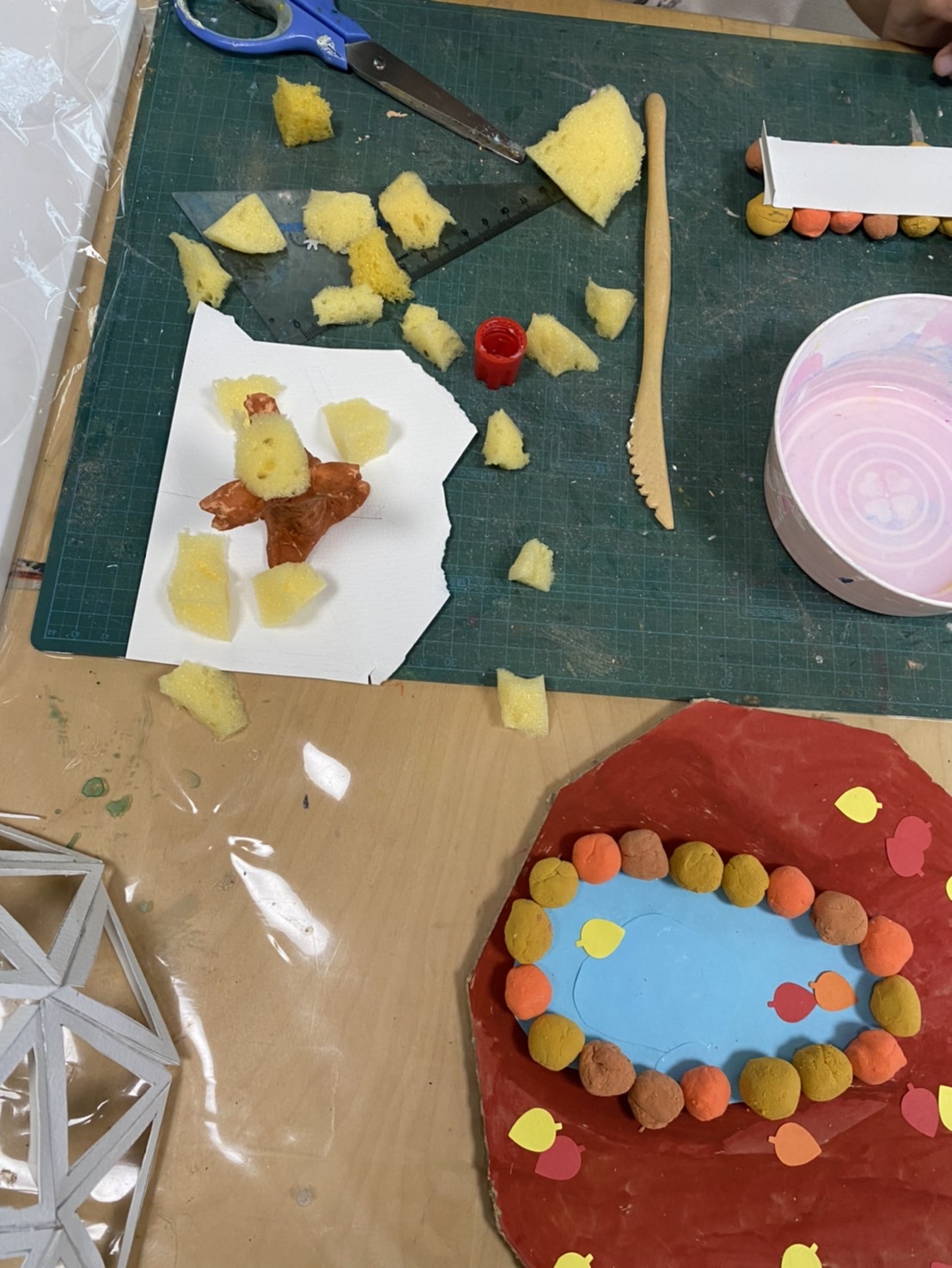 そして、自由工作は、サンドウィッチ弁当を再度作りたいとのことで、今回は彩りやかわいい感じの全体感をテーマに取り組んでいました。