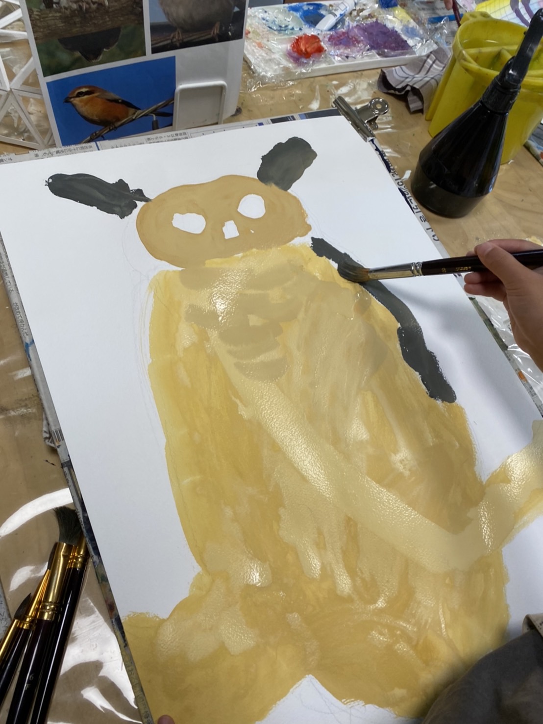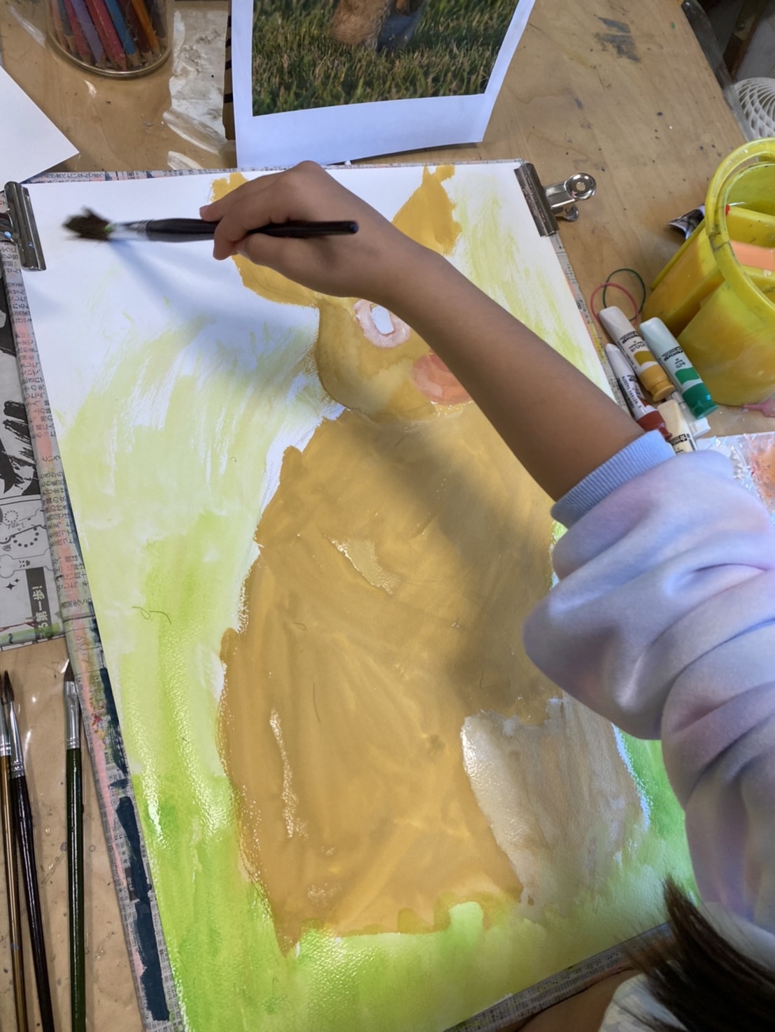 動物のふわふわ感を出す着彩に焦点を置いて取り組んでいきました。着彩に集中してもらうため、構図は少しこちらで大まかな形を準備しました。