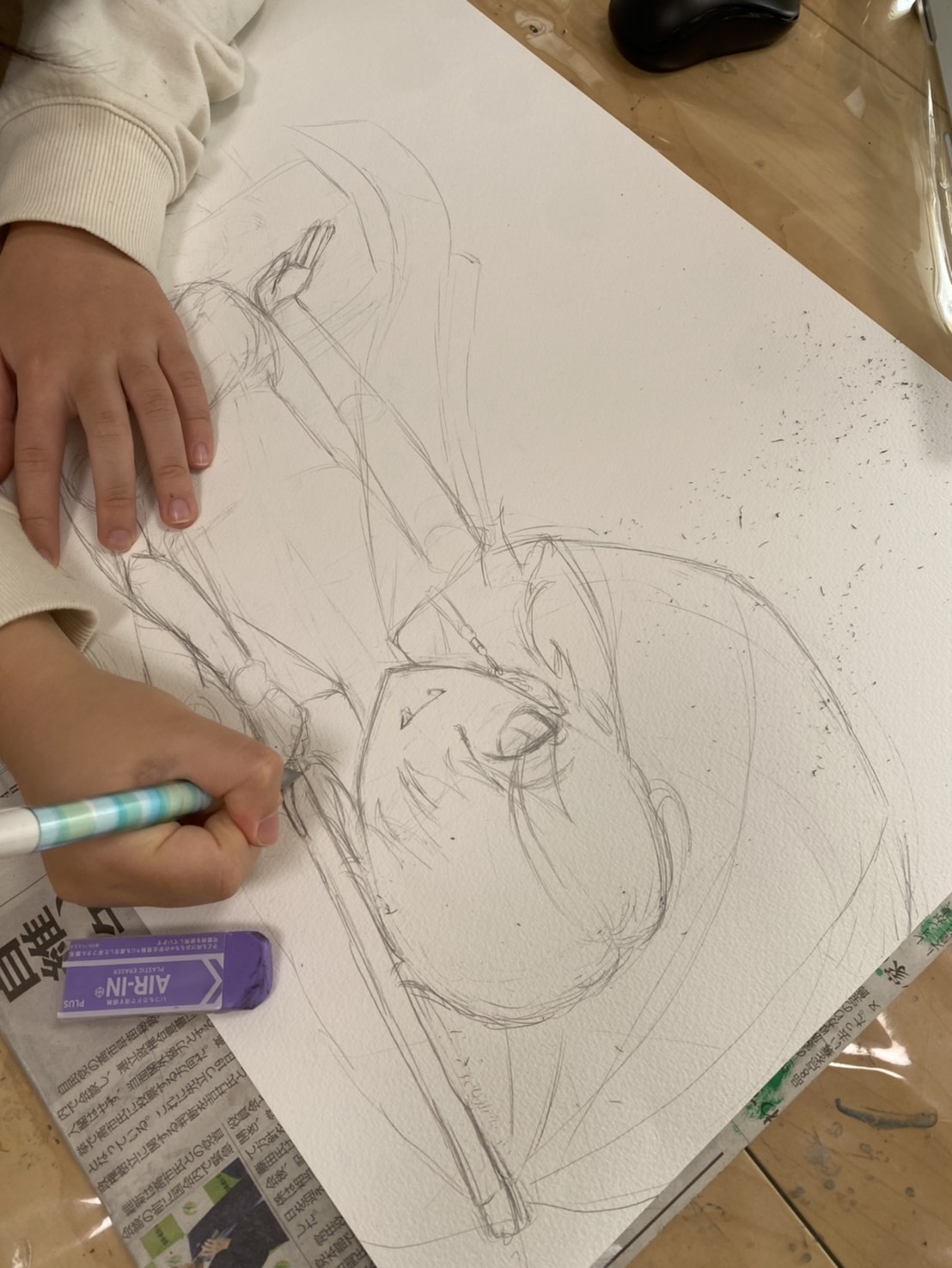 こんにちは、2025年12月7日 日曜日(朝)クラスでは、イラスト画を行いました。