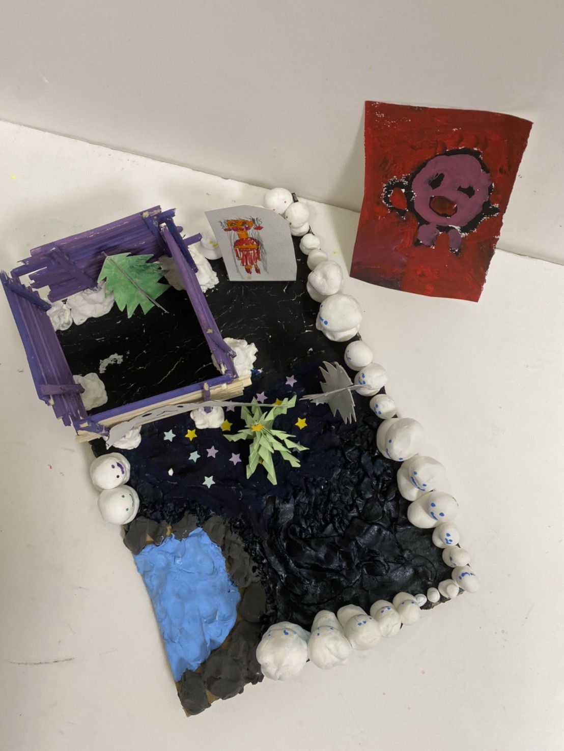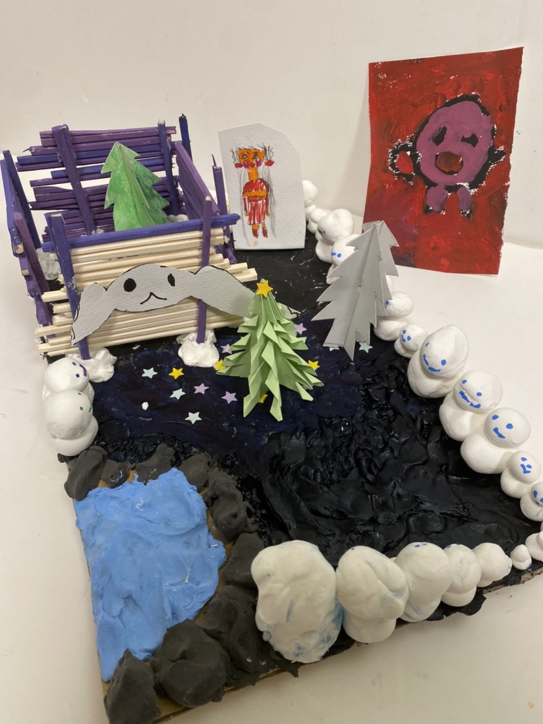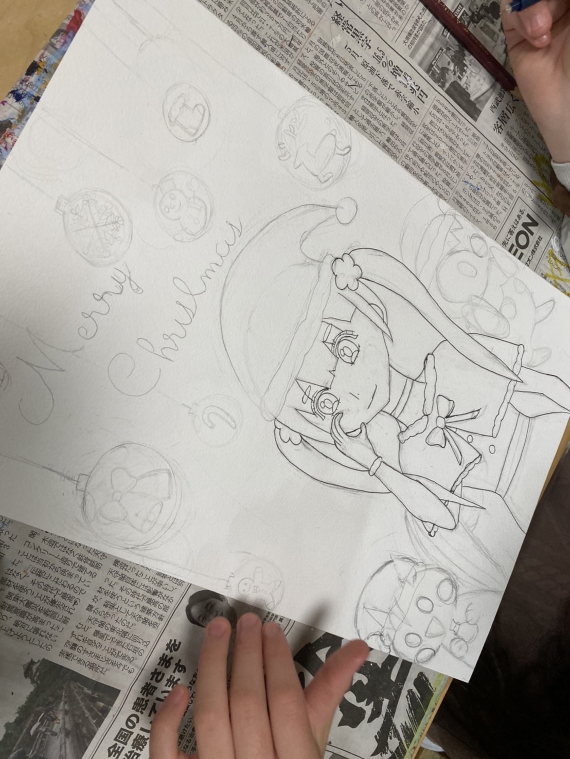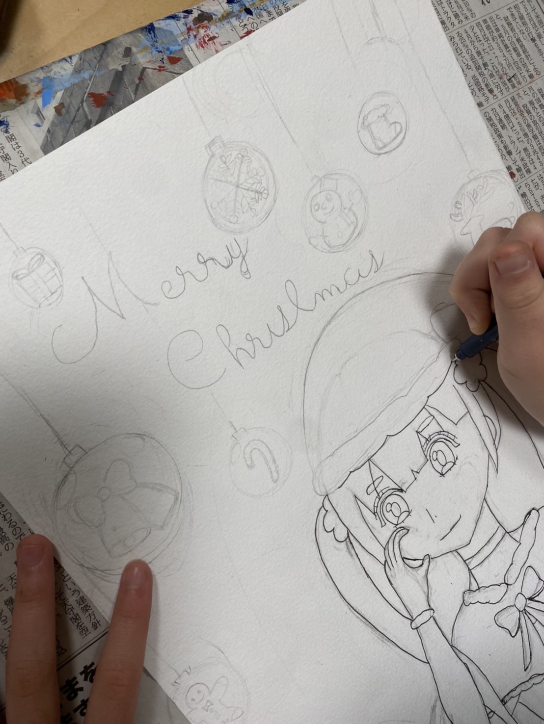 こんにちは、2025年12月10日 水曜日クラスでは、立体工作の仕上げ、イラスト画を行いました。
