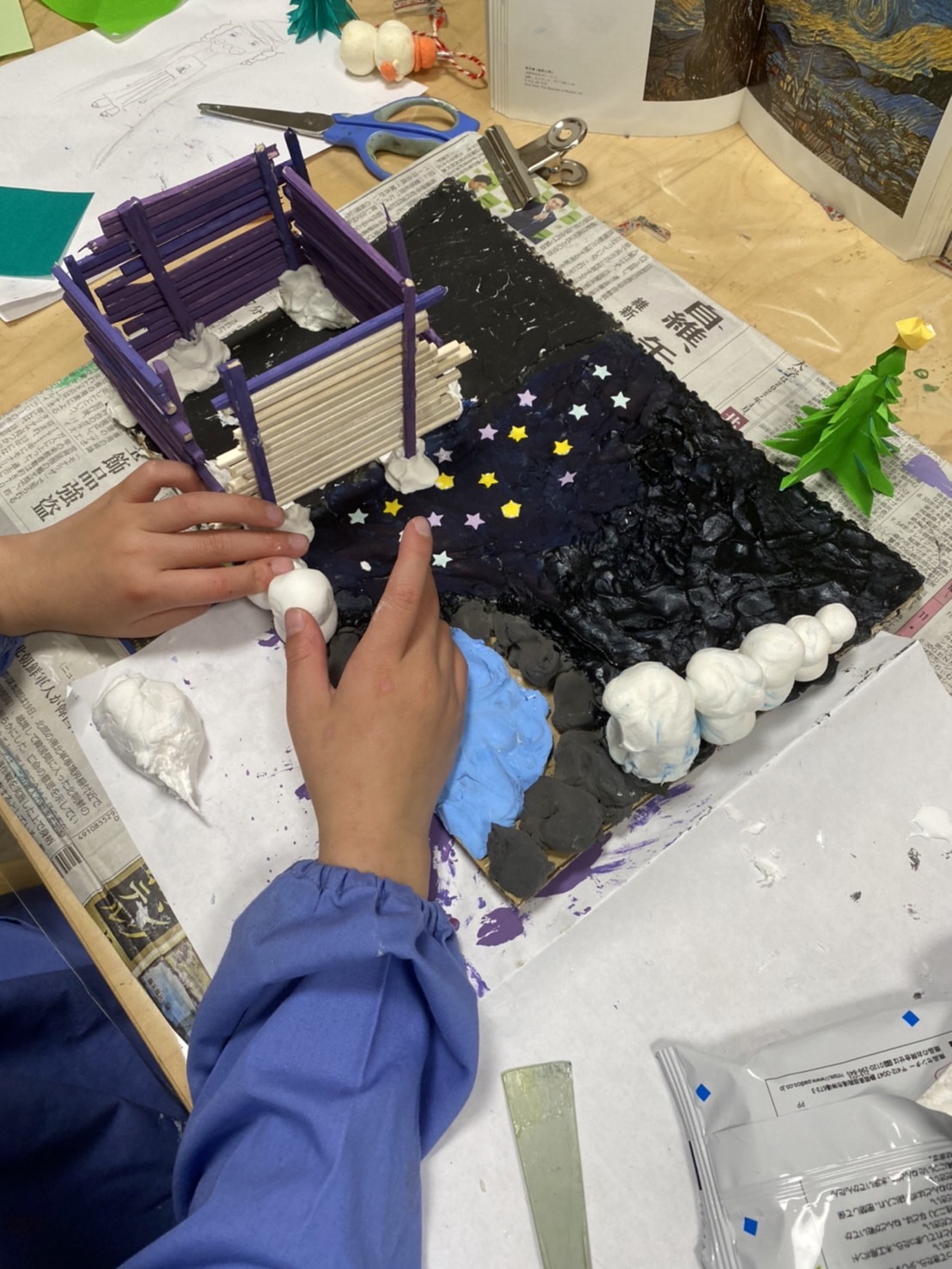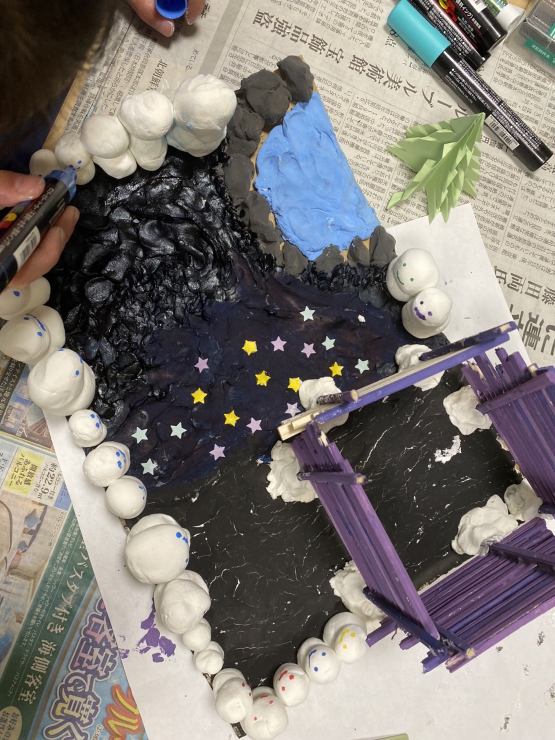 立体工作は、夜の風景とのことですので、星を散りばめてアクセントを付けてキラキラした感じがいいね!