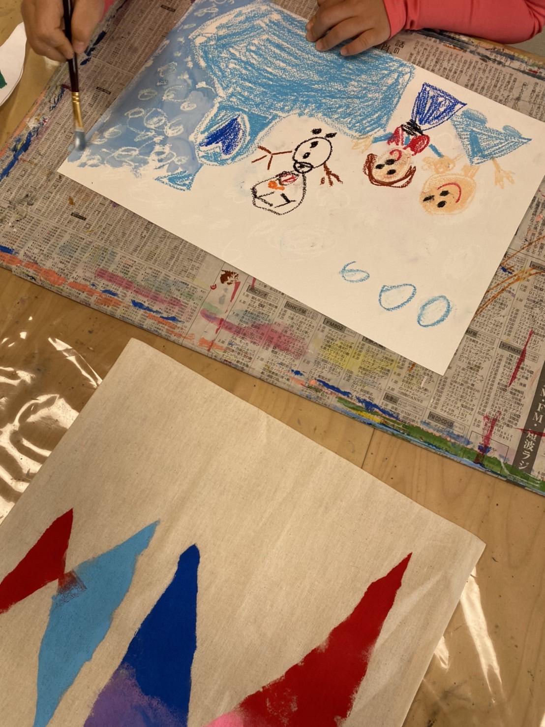 こんにちは、2026年1月11日 日曜日(午前)クラスでは、トートバッグに絵を描こうと自由絵画を行いました。