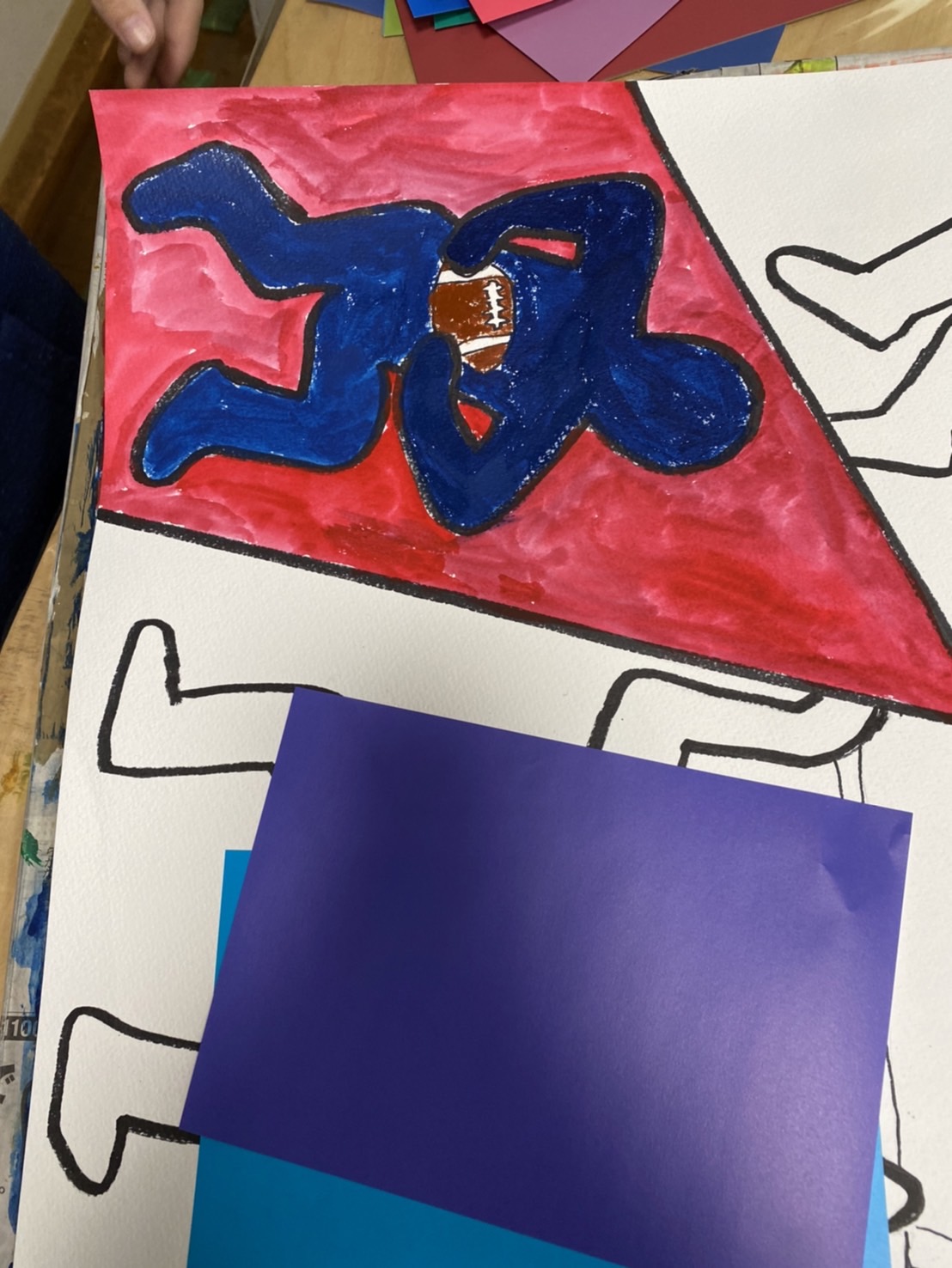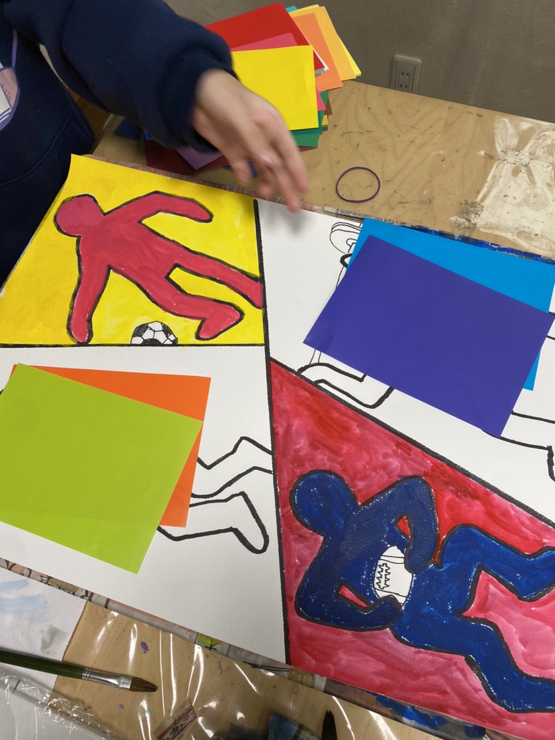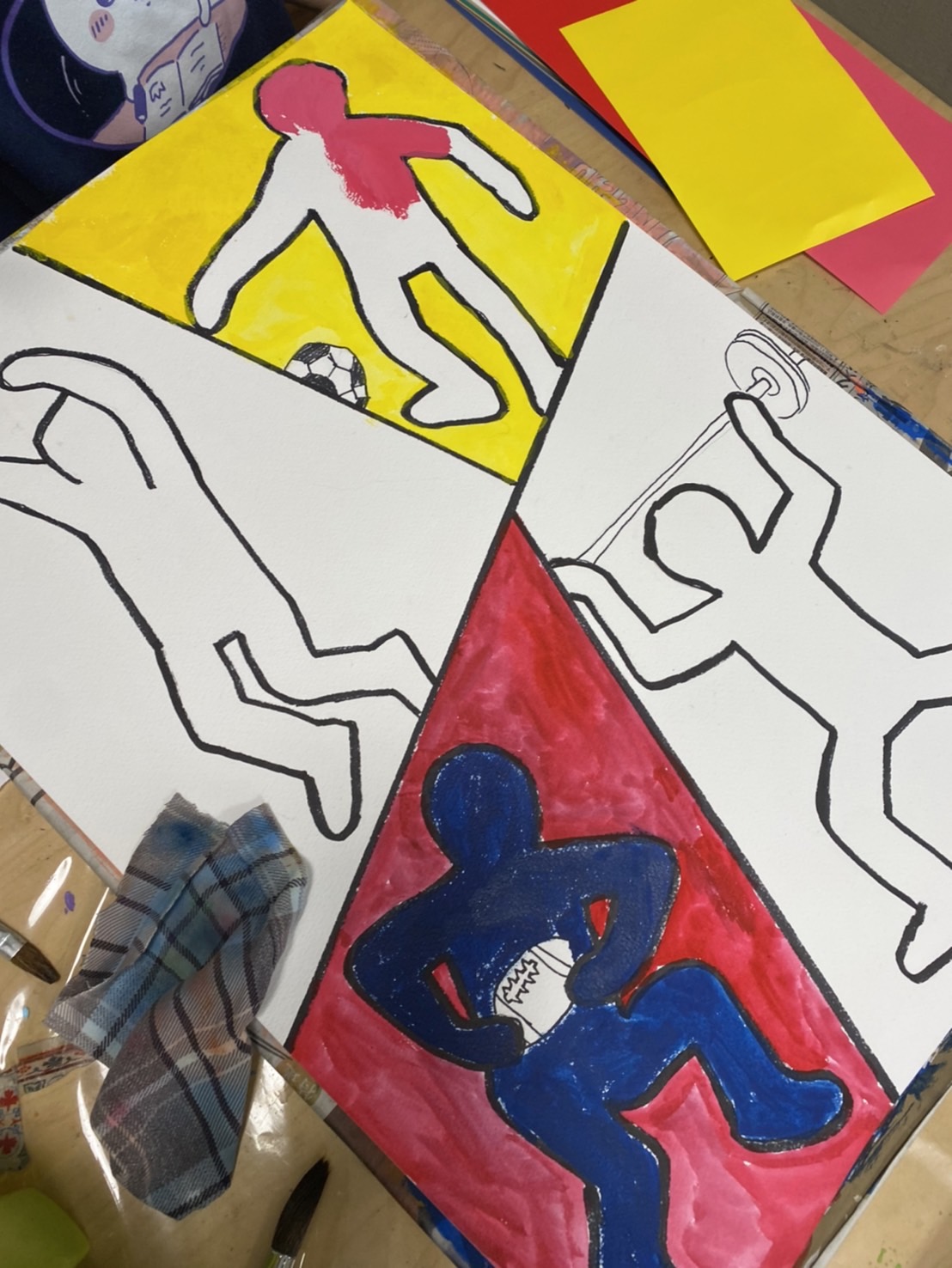 人物の動きをテーマに絵を描いていますが、今回は、着彩に入りました。
