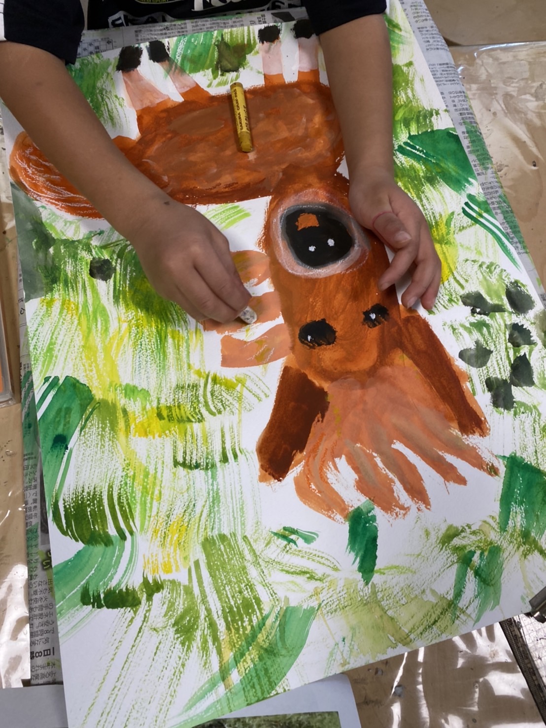 最後に毛並みなど細かいところもクレパス描き、いきいきしましたね!