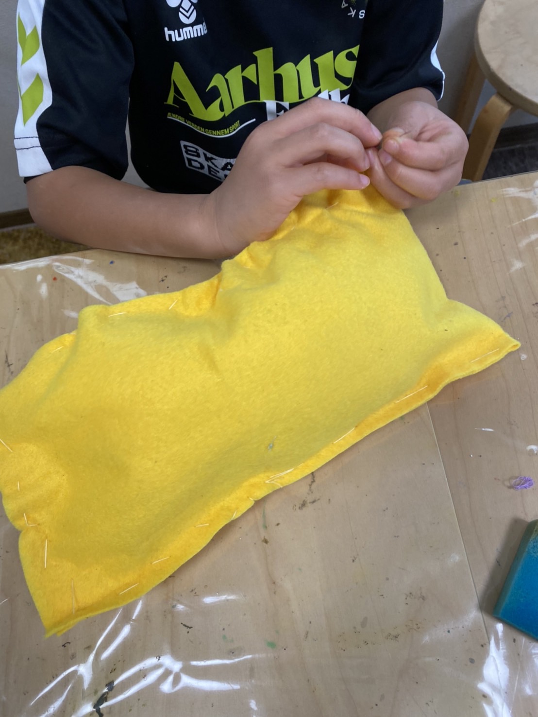 色もカラフルにしながら、こん棒などのマストアイテムもかっこよく配置していますね!また、クッションも作っていました!