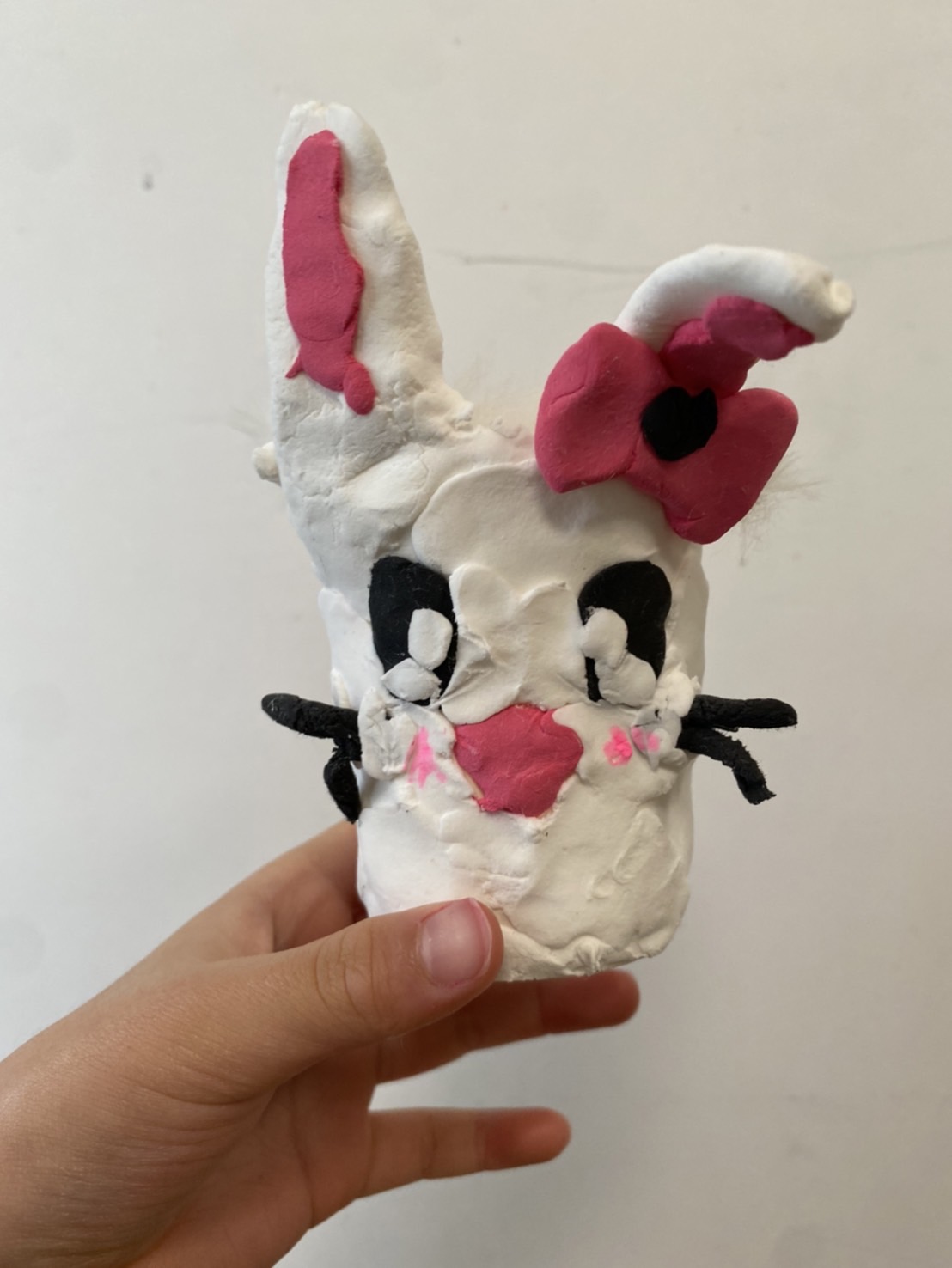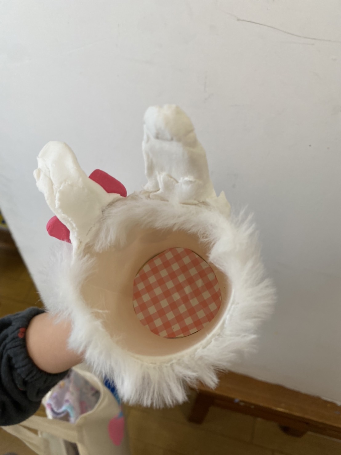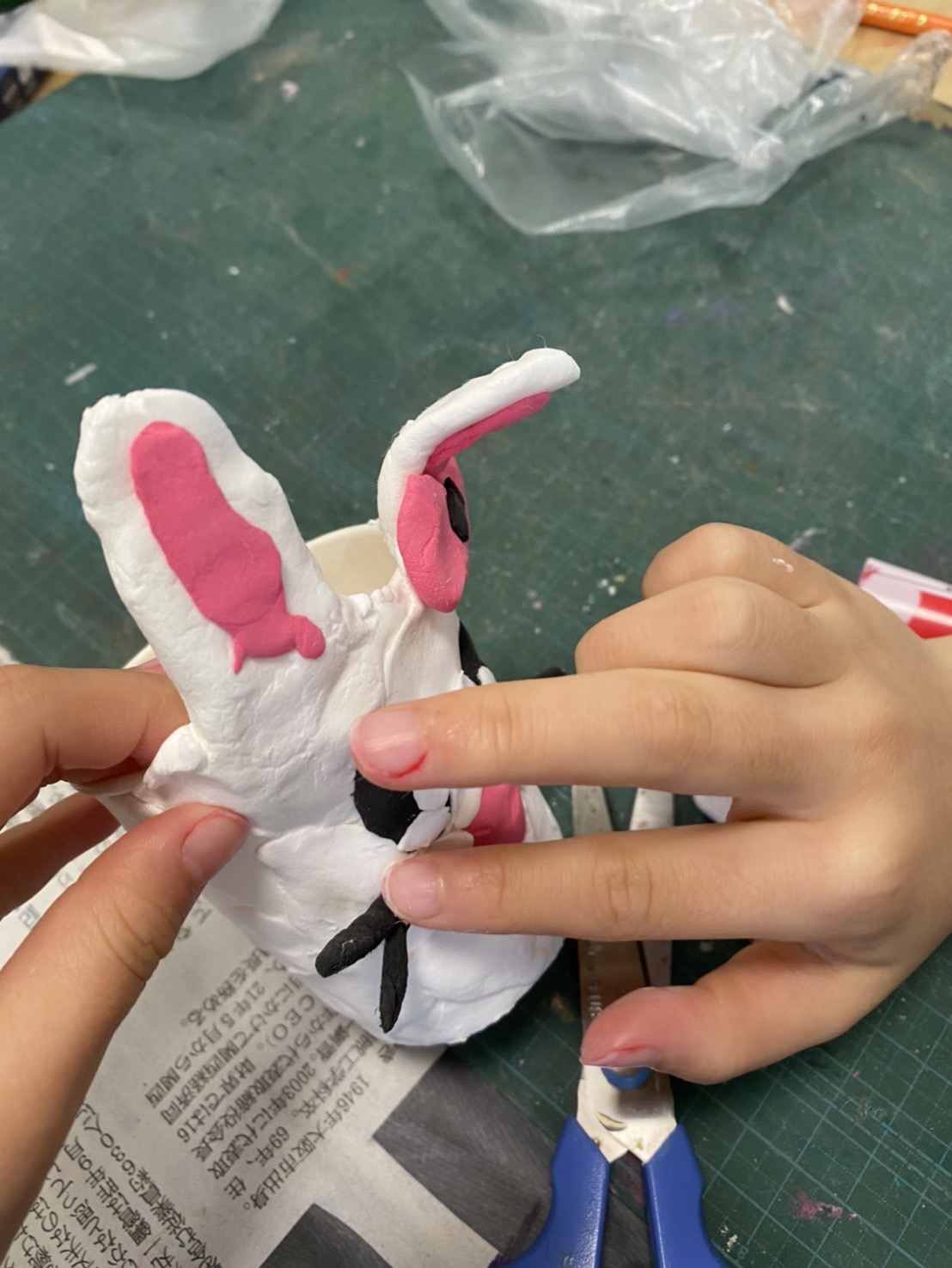 残り時間はウサギの入れ物を作っていました。うさぎのひげも立体的に、細かいところまで丁寧に作った作品ですね!