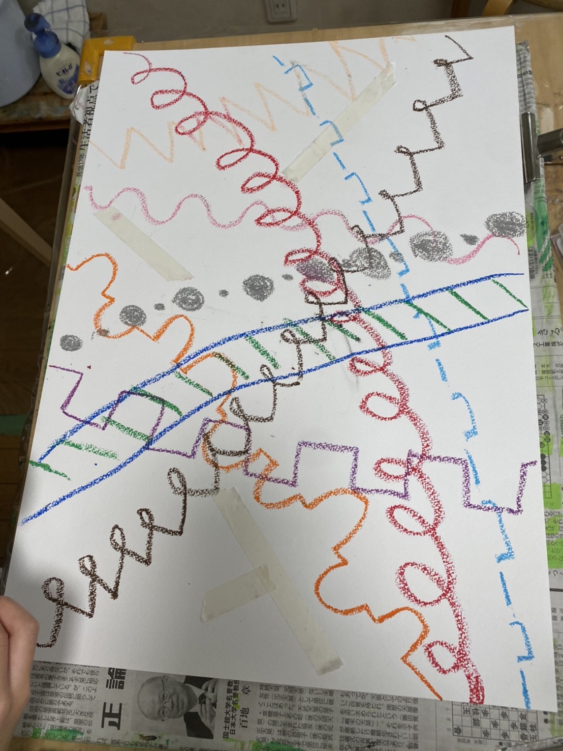 クレパスで筆圧をしっかり付けてはっきり線が出るように描きました。