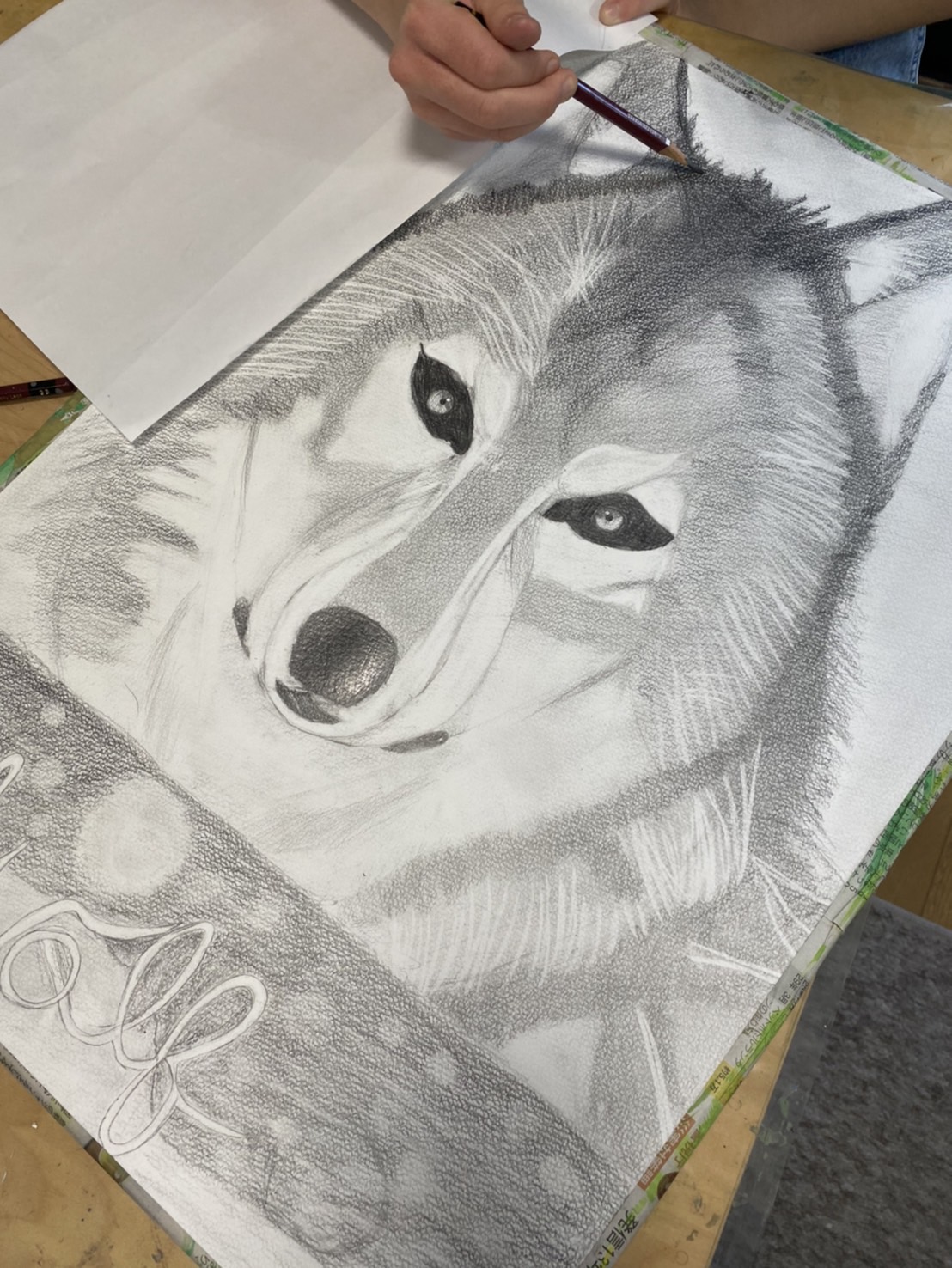 オオカミの鉛筆画の最後の仕上げは、鉛筆の濃淡のバランスを見て、全体の印象をよく見て仕上げました。