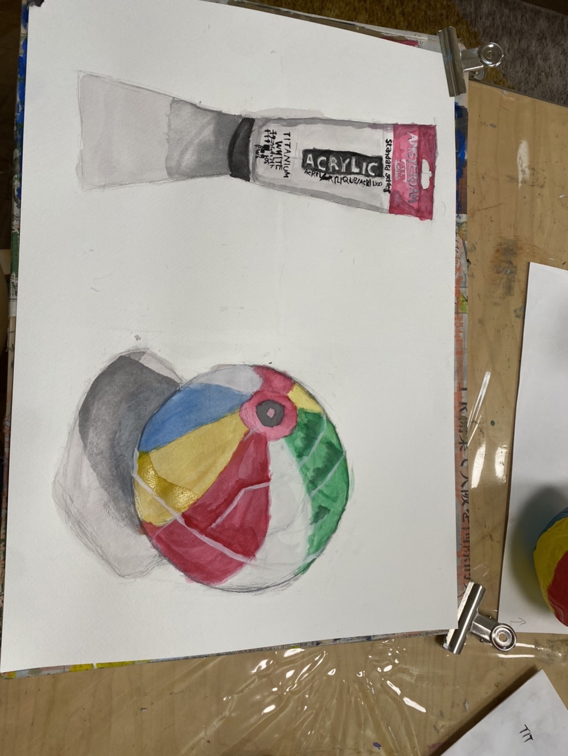 次は、紙風船は細かい紙のしわや、光や影の描写をもう少し描いて質感をだしていくといいですね。