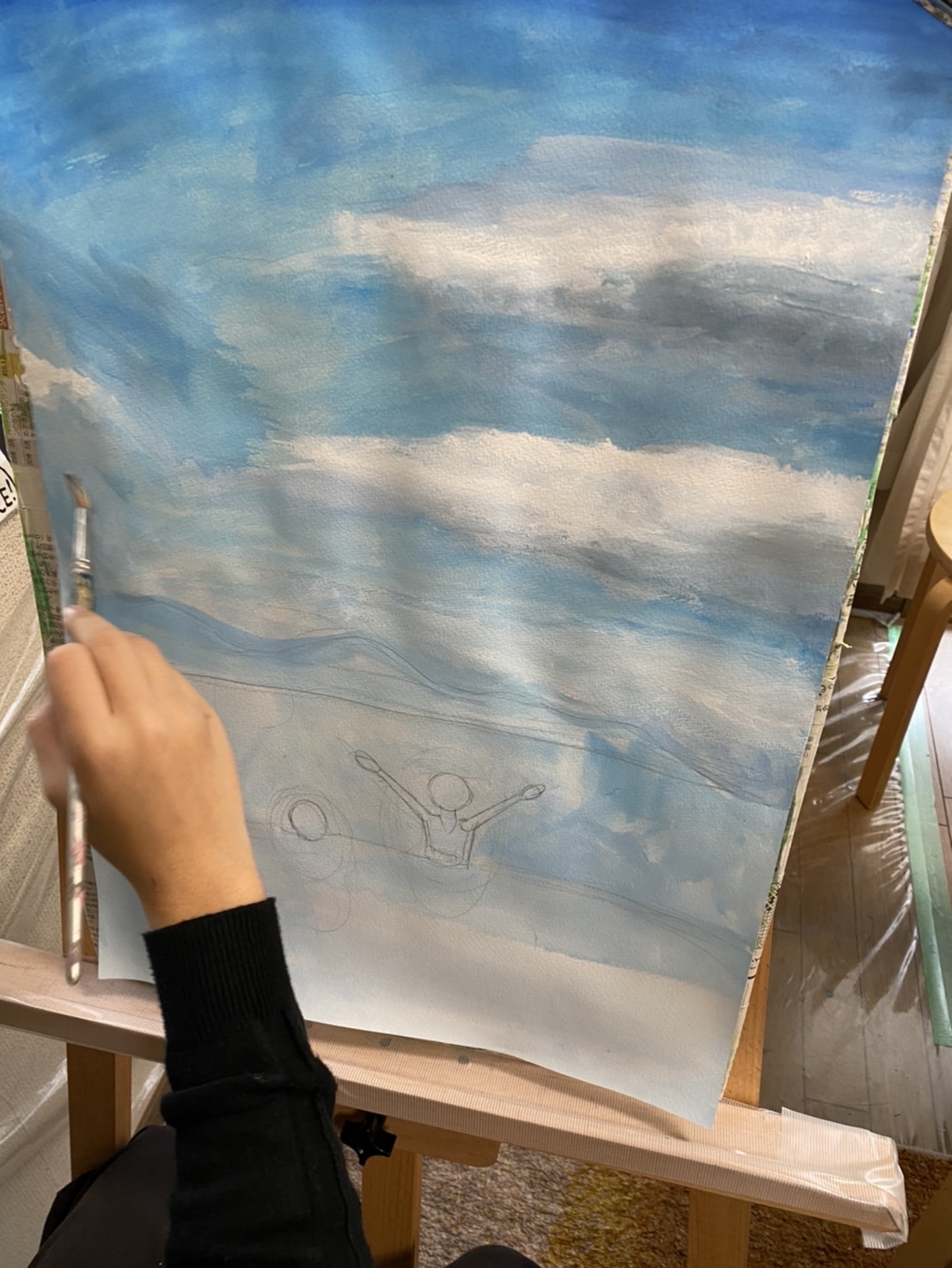 空は、雲の奥行きを感じて雲と雲の距離感を出して描いていました。雲のボリュームもよく出ていますね。