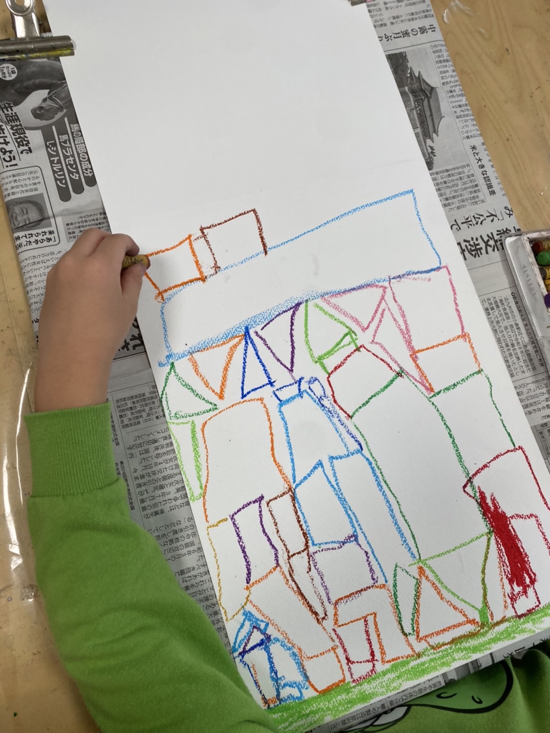 こんにちは、2026年2月7日 土曜日(午前)クラスでは、つみきタワー、観察画、風景画を行いました。