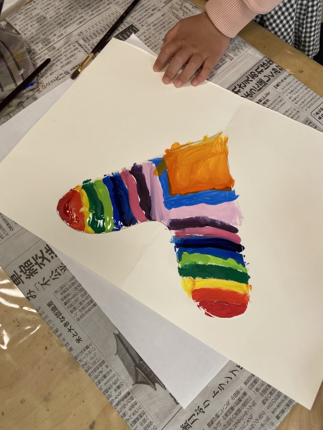 カラフルに色を並べたハートのポップアップカードを作っています!最後はオレンジで元気よくハッピーな色合わせになりましたね!