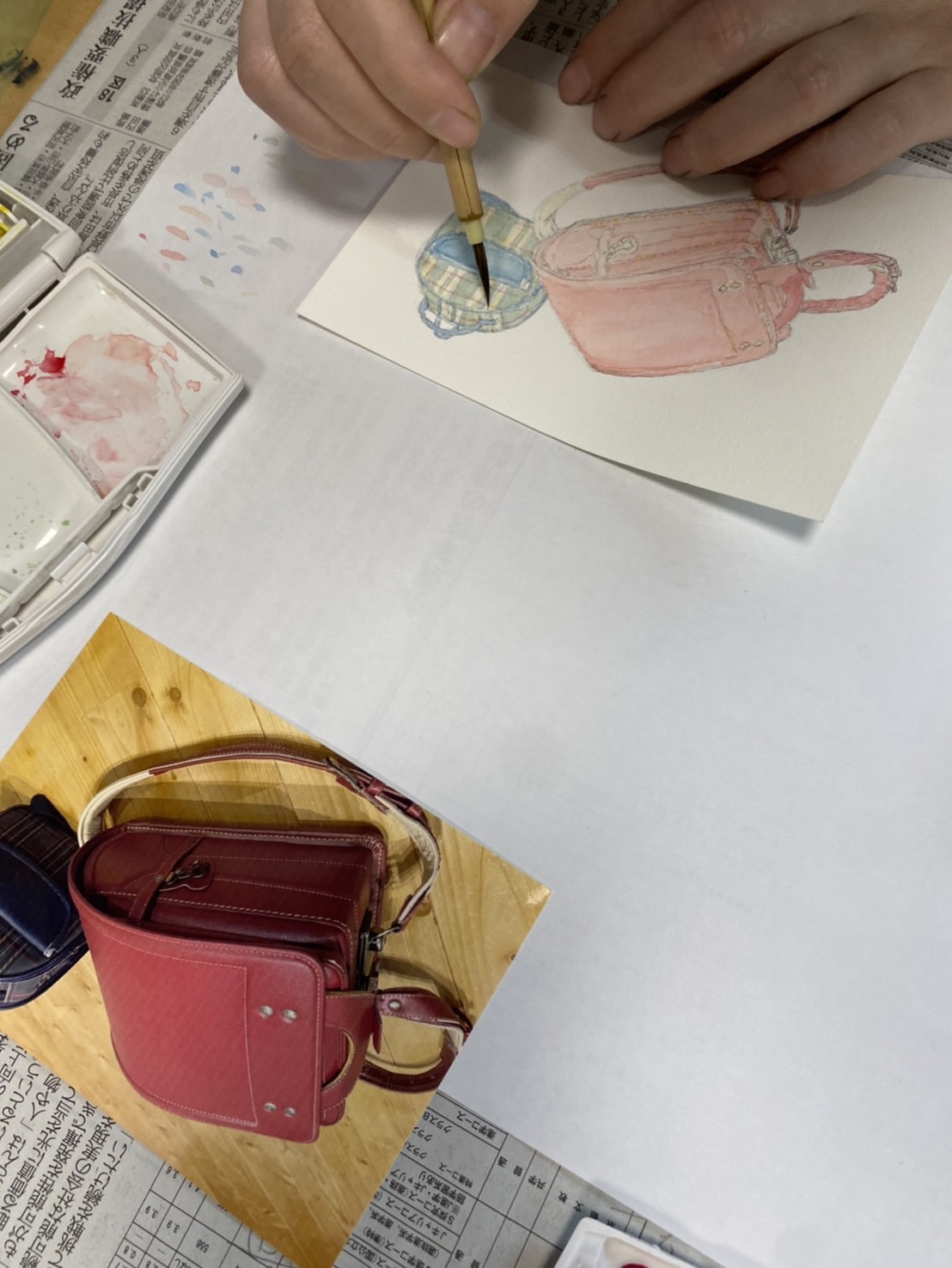 そして、月一成人クラスは、カバンとランドセルの2つのモチーフを描いてらっしゃいます。