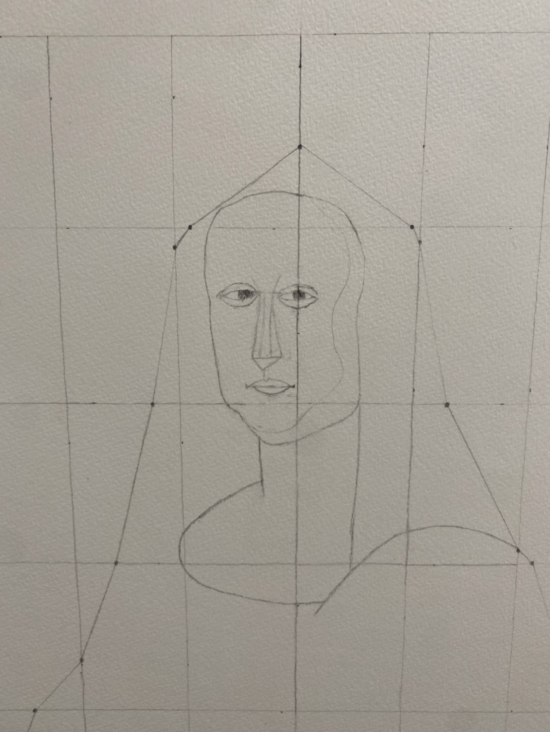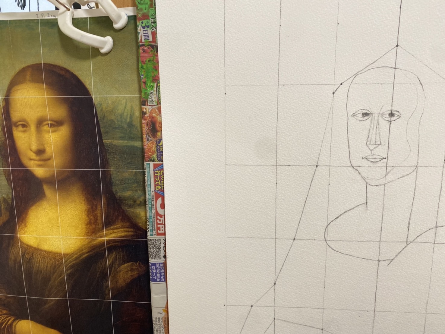 そして、モナリザの模写は、顔のパーツの描き込みです。