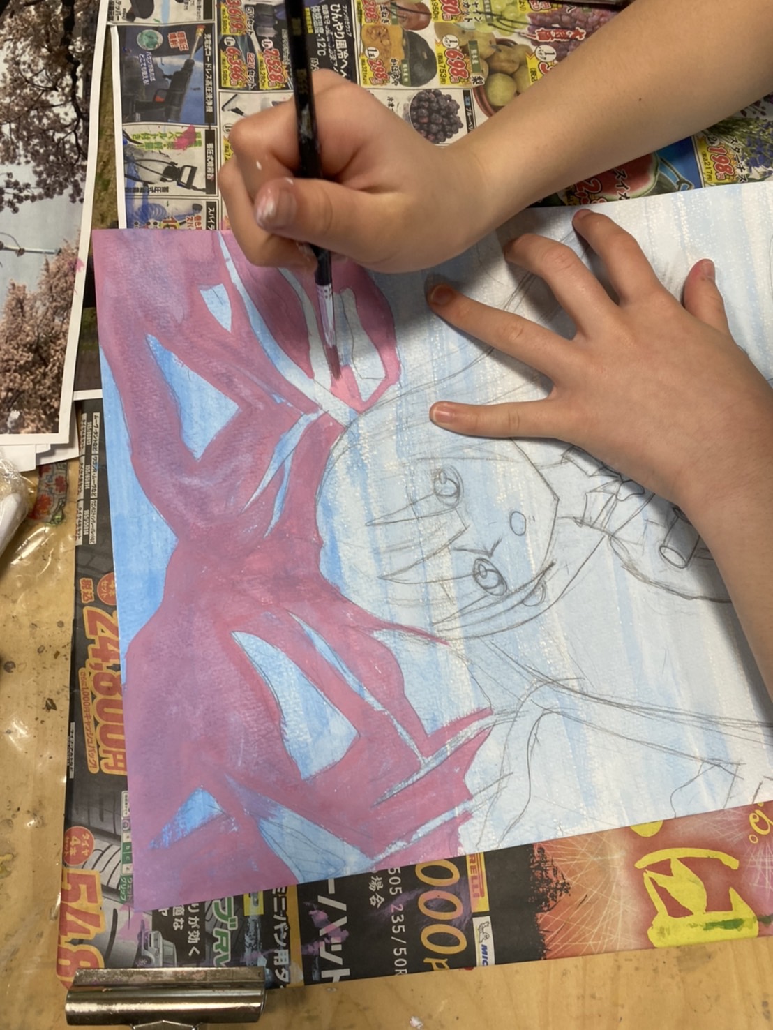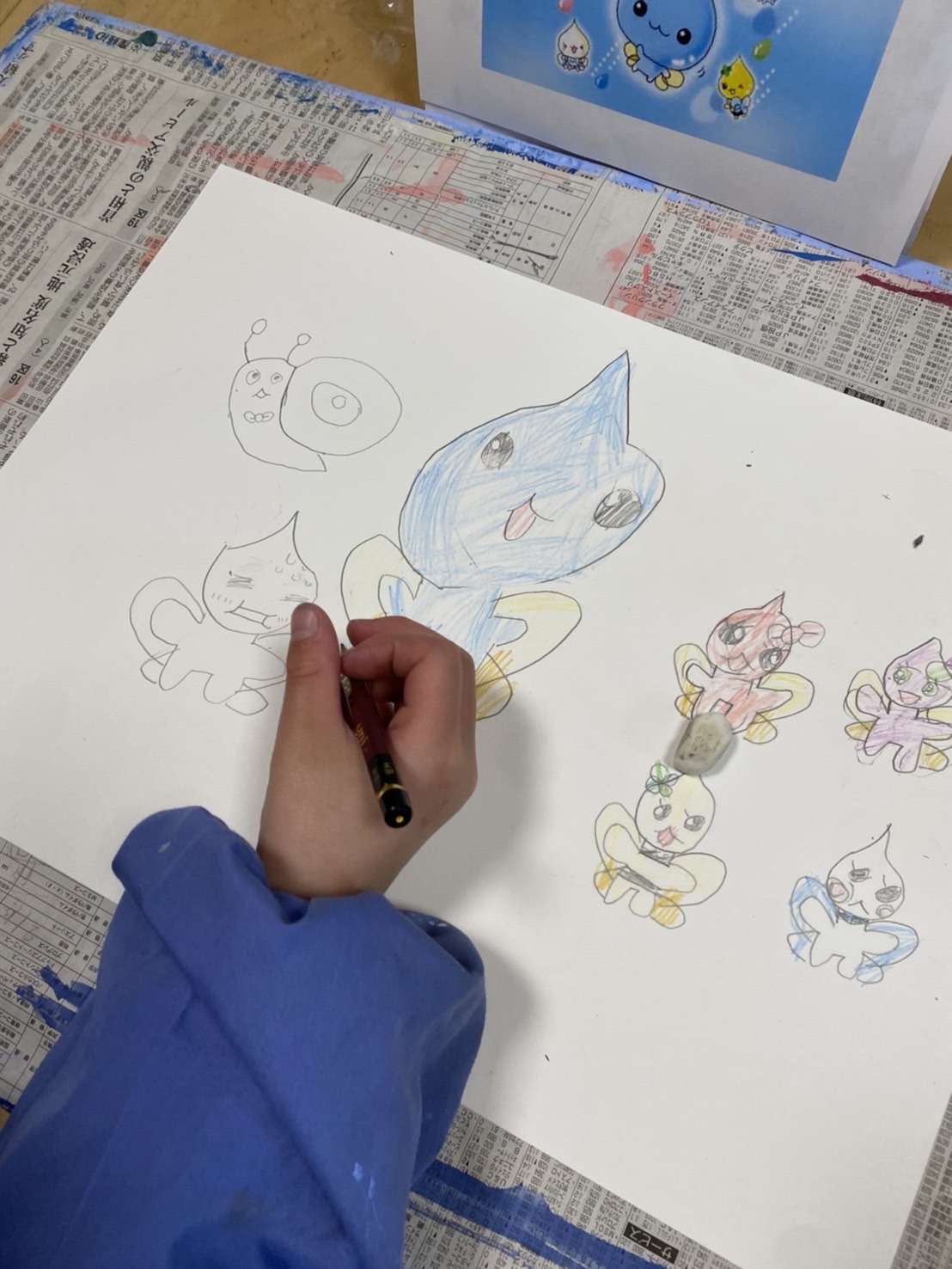 そして、こちらの生徒さんは、シマエナガとしずくちゃんの絵を制作しました。