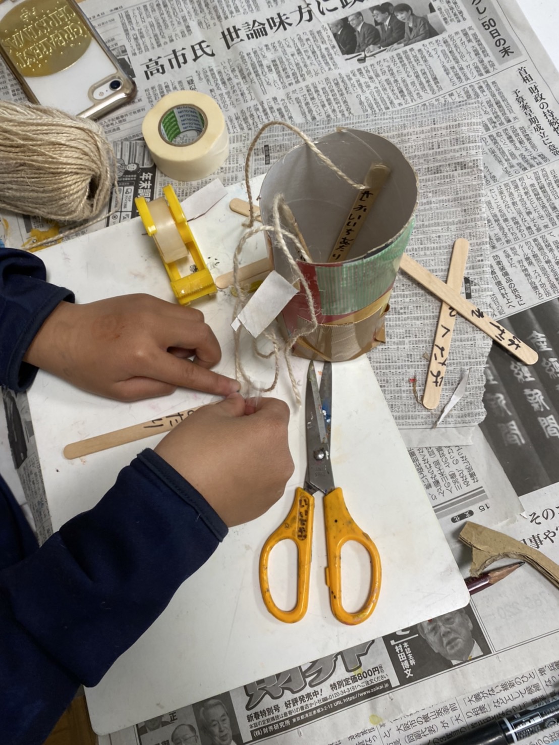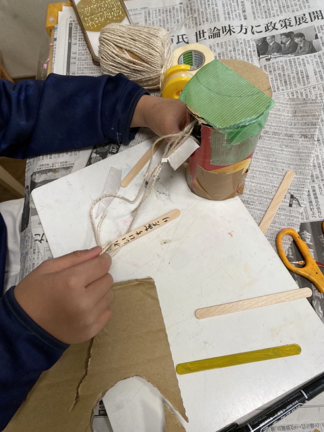 面白いあたりとはずれくじを作って、ひもで引く構造を自分で考えて作っていました!