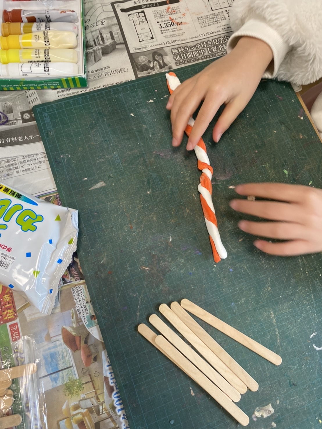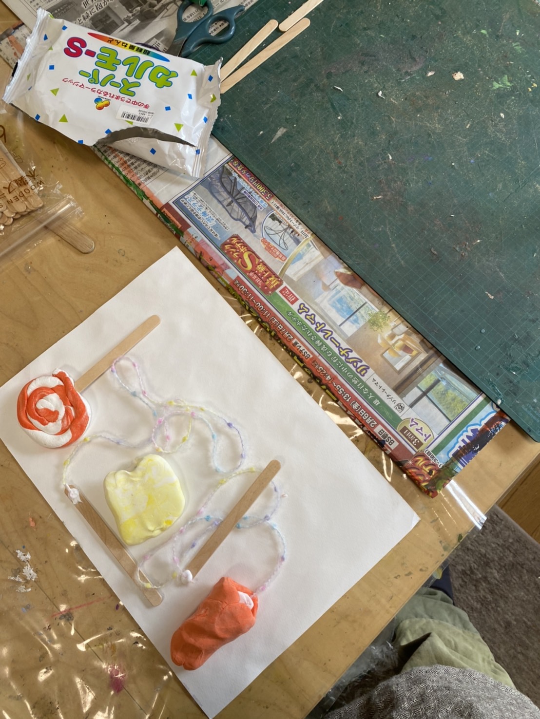自由工作では、こちらの生徒さんは、アイスのおみくじを作っていました。