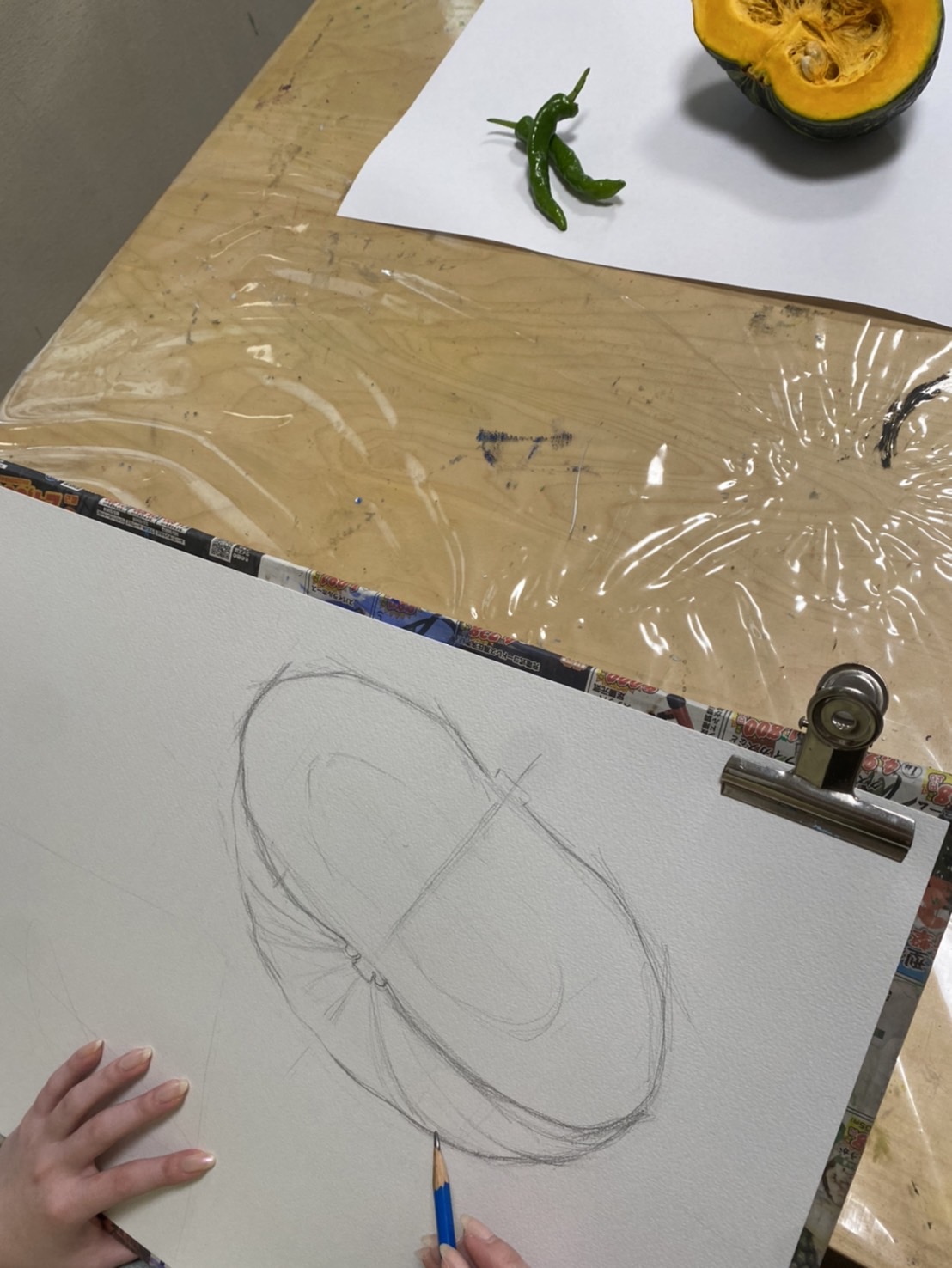 そして、野菜のデッサンは、今回は2つのモチーフの関係をよく見て取り組むことをテーマにしました。