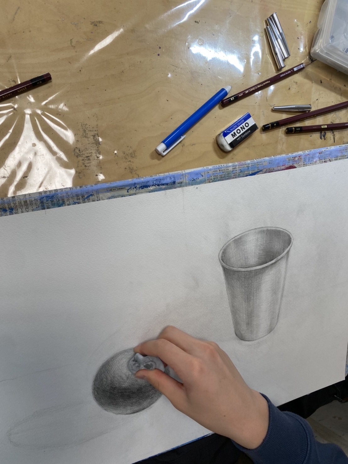 明暗境界線がどこにあるかよく観察し把握して描くことと、回り込みの面を意識して描くことがポイントですね。