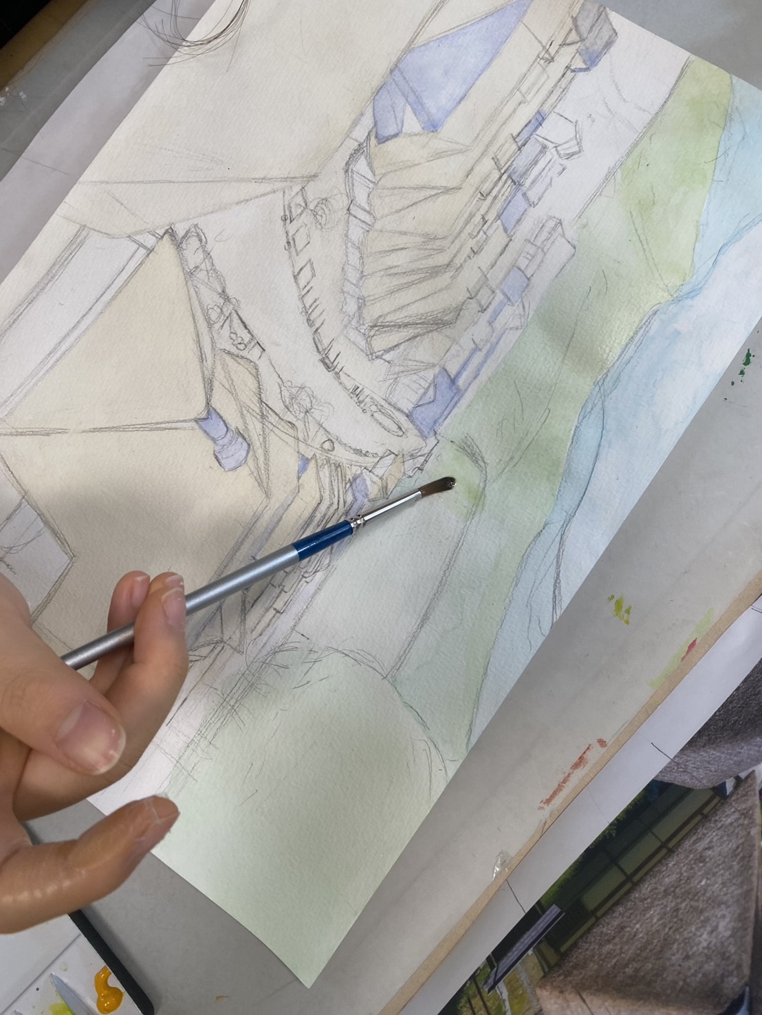 青味がかった屋根を描き、リズムのメリハリもでてきましたね!