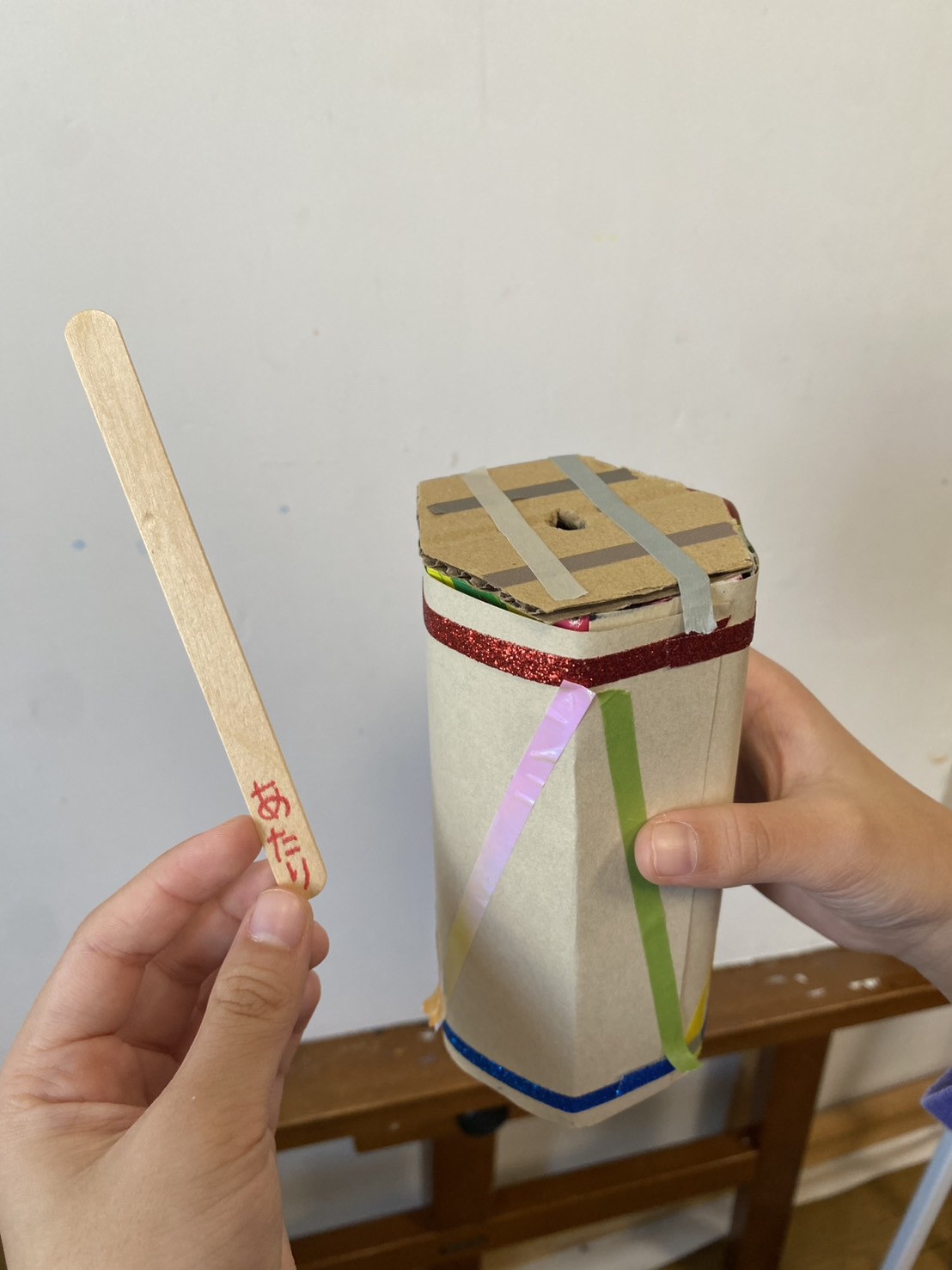 おみくじ工作は、スティックを用いて何か作ろうということで、箱を持参して取り組みました。