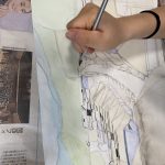 そして、にじみ絵は春のイメージで描いています。髪の毛は動きを付けて軽やかに、洋服は黄色とピンクをグラデーションしてアクセントを付けていました。